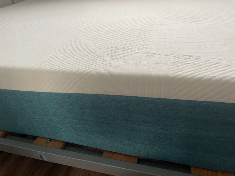 Used once for a guest staying overnight. And had a mattress protector on it, along with a bed sheet.