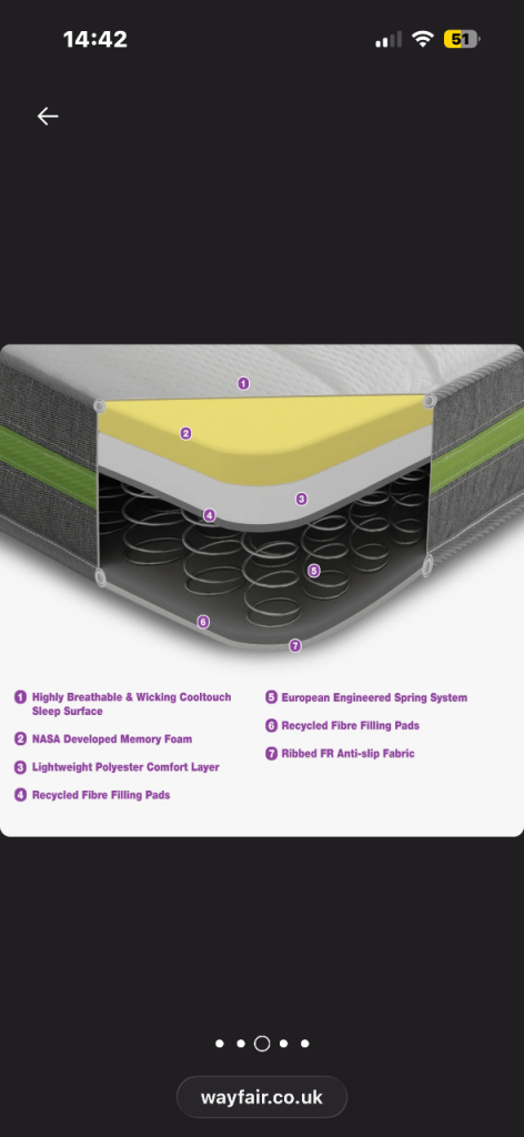 This Comfort Memory Foam and Spring Single Mattress is designed for single bed frames. It is comfortable and very very soft. Bought it in August 2024 only used it for a year before I bought myself a double bed. No stains and very clean. Looking to sell, don't need a van can fit in a car with the seats possibly down as that's how I transported it, has been vacuumed and rolled up. Thank you