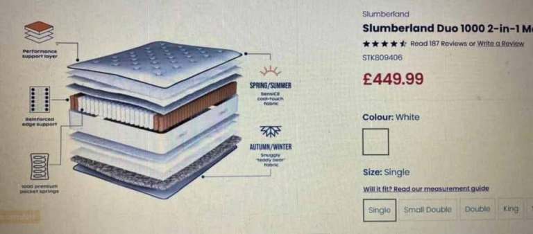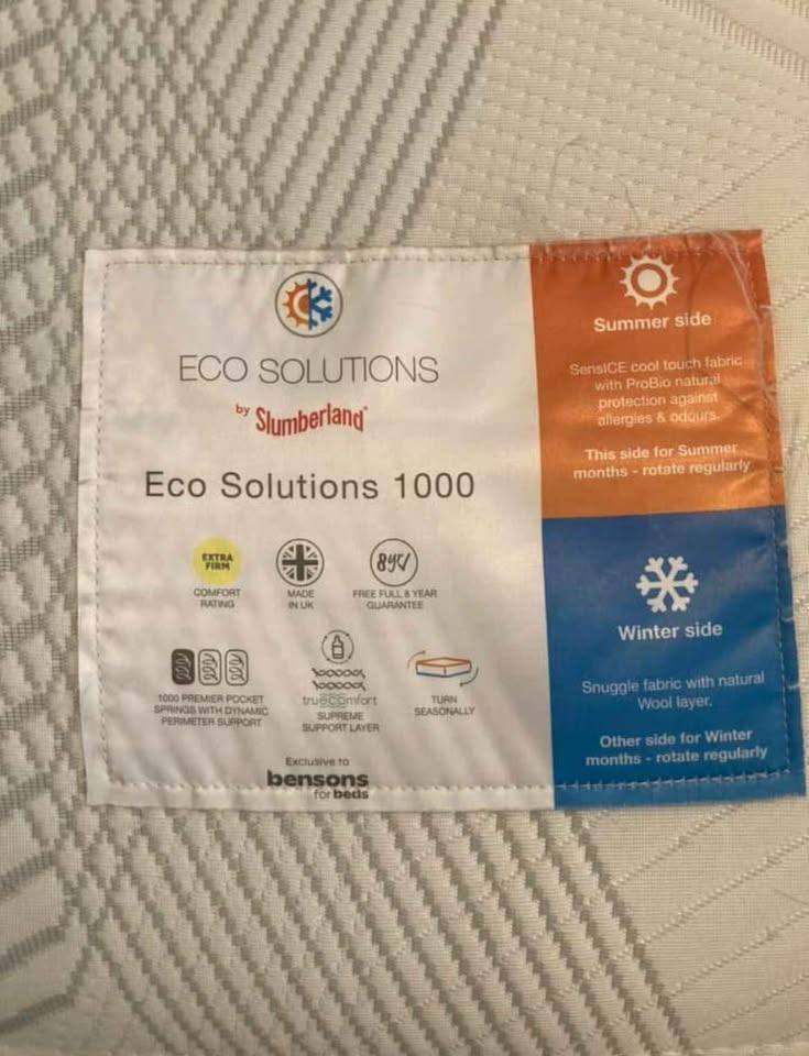 Slumberland eco 1000 extra firm mattress. Provides great support and is very comfortable and is reversible with summer/winter sides.