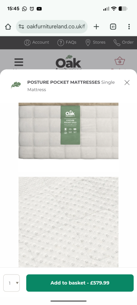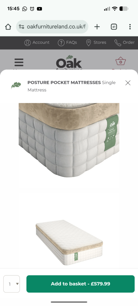Posting for under a monthUnused Oak Furniture Land Single Mattress - Like New (2000 pocket springs)