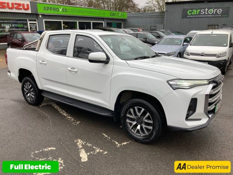 This 2023 MAXUS T90EV Elite presents a superb ownership proposition, having been driven by only one owner and boasting a full service history, with its last service completed on 09 August 2024 at 7,618 miles. This electric pickup truck features a substantial 89 kWh battery, offering a maximum range of 220 miles when new, and has covered a low mileage of just 13,534 miles for its age. The Elite trim comes equipped with a 10.25 inch touchscreen with Bluetooth connectivity, a reversing camera, and rear parking sensors to aid manoeuvrability. Comfort is ensured with manual front air conditioning and a pollen filter. The MAXUS T90EV Elite stands out with its impressive electric powertrain and thoughtful features designed for convenience and practicality. The inclusion of a reversing camera and rear parking sensors, alongside the 10.25 inch touchscreen, provides a more informed and less stressful driving experience compared to many other vehicles in its class. Furthermore, the comprehensive service history and the provision of a 12 month MOT upon purchase offer peace of mind, highlighting the care this vehicle has received. A 3 month warranty is also included. Opening hours are 9.00am - 5.30pm Mon to Sat and 10.00am-5pm Sun.. All major debit cards accepted. Finance and Warranties are available. Approved Cars make it our business to try to get you a good deal on your purchase & if you require finance we can help no matter what your financial situation. The vehicle specifications are provided by Autotrader and may differ from the actual vehicle. Please verify that the features most important to you are present, as the specifications are auto-generated by Autotrader. All of our cars are HPI checked and come with a 3-month mechanical breakdown warranty as standard (excluding trade clearance cars), HPI certificate & MOT print out. We also offer a drive away same day facility and a home delivery facility. We can face time you a live demo of the car of your choice upon request.10.25in Touch Screen, 12V Power Socket, 17in Alloy Wheels, 220v Power Outlet, 3-Point Seatbelts for All Passengers, ABS - Anti-lock Braking System, Body-Colour Exterior Handles, Body-Colour Front Bumper, Body-Colour Rear Bumper, Body-Coloured Power Rearview Mirror, Driver and Front Passenger Airbags, Driver and Front Passenger Side Airbags, Electric Front Window, Electric Power Steering, ESP-EBA-HAS-RMI-HDC, Front Row Seats - 6 Way Electronic Adjustment, Front to Rear Curtain Airbags, Front-Rear Seatbelts Reminder, Halogen Headlights with Automatic Induction, High-Mounted Stop Light, ISOFIX plus Top Tether, LED Daytime Running Lights, LED Rear Lamp, Manual Front Air Conditioner and Pollen Filter, Painted Bed Liner, Parking Sensor - Rear, Polyurethane Multi-Functional Steering Wheel, Rain Sensing Windscreen Wipers, Rear Fog Lamp, Rear Window Electric Heating Defrosting, Reversing Camera, Side Step