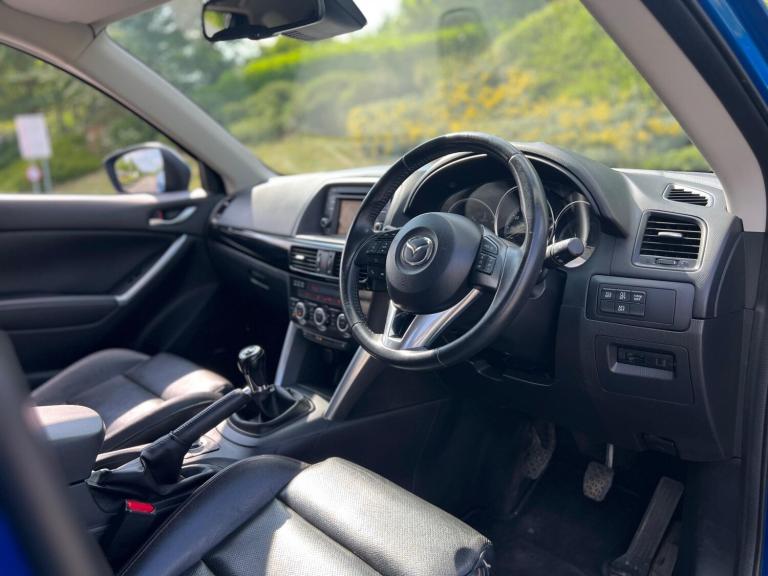 2013 Mazda CX-5 2.2 SKYACTIV-D Sport 4WD Euro 6 (s/s) 5dr in Blue. 101000 warranted miles on the clock. Car comes with a 12 Month Warranty!!! MOT till 30th June 2026. Only 2 previous owners from new. Service History Available: 5 Services 5 Main Dealer. Car drives well with no mechanical faults. Full V5 Available. Good spec including: Sat Nav, Heated Leather Seats, Leather Steering Wheel, Parking Sensors, Privacy Glass, CD/Radio/AUX/USB, Bluetooth, AC/Climate Control, Electric Windows, Electric Mirrors, Alloy Wheels, Cruise Control, Central Locking and many more. Nationwide Delivery Available. P/X Welcome. HPI Clear. ULEZ Compliant. 2 Keys. Any questions don't hesitate to contact us on [Phone number removed]