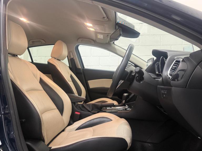 This 2016 Mazda3 SKYACTIV G Sport Nav presents a superb ownership proposition, having been cherished by only two previous owners. As a Sport Nav model, it boasts a responsive 2.0 litre petrol engine and meets Euro 6 emissions standards. Inside, you'll find a premium BOSE Centrepoint Surround System with nine speakers for an immersive audio experience, alongside an integrated Bluetooth system for seamless connectivity. Convenience is enhanced with Smart Keyless Entry and front parking sensors, while dusk sensing automatic headlights ensure optimal visibility in varying light conditions.This Mazda3 stands out with its impressive fuel economy, achieving up to 50 miles per gallon, and its low CO2 emissions, which are better than many comparable vehicles. Furthermore, its low insurance group rating indicates that running costs are kept to a minimum, making it an economical choice for many drivers.