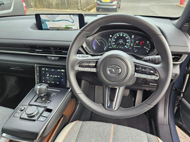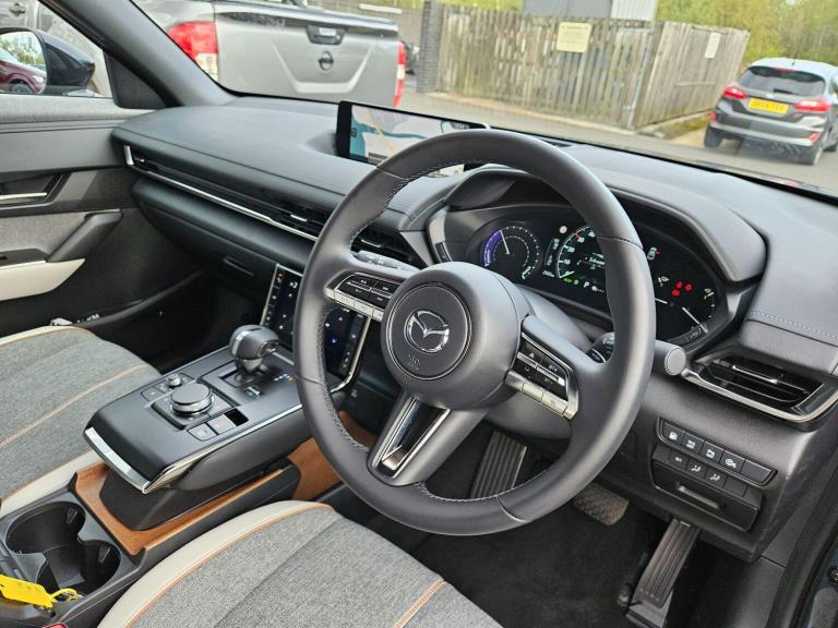 This 2025 Mazda MX-30 Exclusive Line presents an exceptional opportunity with an incredibly low mileage of just 2503 miles, having been owned by only one careful keeper. This petrol plug in hybrid model combines efficient driving with modern technology, featuring integrated Bluetooth for seamless connectivity and Smart Keyless Entry for convenience. The LED headlights with auto levelling provide excellent visibility, while the front seats are heated for added comfort during colder journeys.The Exclusive Line trim level ensures a premium experience, enhanced by the inclusion of Apple CarPlay and Android Auto, allowing you to easily access your smartphone apps on the go. These features, along with the other notable equipment, demonstrate a superior level of specification compared to many other vehicles in its class. This Mazda MX-30 is a well maintained and thoughtfully equipped example, ready for its next owner.