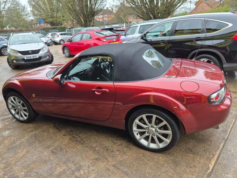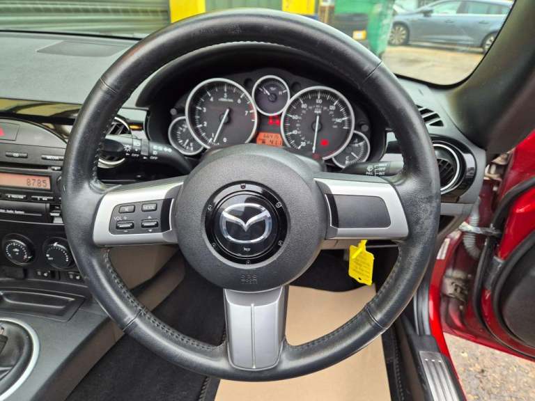 This 2008 Mazda MX-5 i Sport is a rare find, having been cherished by just one owner since new. This particular model boasts the desirable Sport trim and is powered by a responsive 2.0 litre petrol engine. Inside, you'll appreciate the comfort of front heated seats, perfect for those cooler days.This MX-5 offers an attractive blend of efficiency and economy. With a fuel economy of 35 miles per gallon, it represents a sensible choice for everyday driving. Furthermore, its low insurance group and low CO2 emissions indicate that running costs are kept to a minimum, making it a more economical option compared to many other vehicles in its class..Front Fog Lights,Body Colour Bumpers,Immobiliser,Body Colour Door Handles,Front Seatbelt Force Limiters,Sports Suspension,PAS,Lockable Glovebox,DSTC-Dynamic Stability And Traction Control,Front Head Restraints,Front Centre Armrest,Dual Front Airbags,Front Seatback Pockets,Sports Seats,Remote Boot Release,Superlocking,Electrically Heated Door Mirrors,Fasten Seatbelt Reminder,ABS+Electronic Brake Force Distribution,Side Airbags,17"" Alloy Wheels,Remote Central Door Locking,Silver Interior Door Handles,Drivers Footrest,Digital Clock,Day/night Rear View Mirror,3 Point ELR Front Seatbelts With Pretensioners,Cupholders,Stainless Steel Scuff Plates,Antenna,Centre Console Storage Box,High Mounted Rear Brake Light,Interior Light,Water Temperature Gauge,Green Tinted Windscreen,Oil Pressure Gauge,Alarm With Interior Movement Sensor,Door Pockets,Headlamp On Reminder,Manual Passenger Airbag Deactivation Function,ISOFIX Front Passenger Seat Child Seat Compliance,Windblocker,Fuel Filler Release,Leather Steering Wheel With Audio Controls,Supplementary Restraint System - Central Control Unit And Crush Sensors,Leather Handbrake Lever With Silver Release Button,Front Tunnel Storage Net,Amber/red Dashboard,Silver Finish Meter Rings,Electric Windows With One Touch Open,Leather Upholstery With Heated Front Seats,Puncture Repair Kit (ilo Spare Wheel),Halogen Headlamps With Levelling,Piano Black Instrument Panel,Premium Cloth Soft Top With Integrated Heated Glass Window And Soft Top Cover,Leather Gear Knob With Silver Insert
