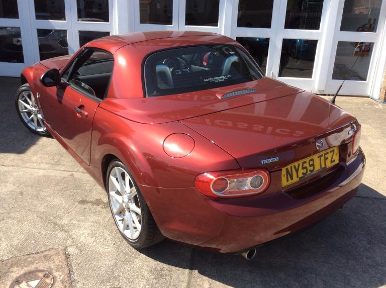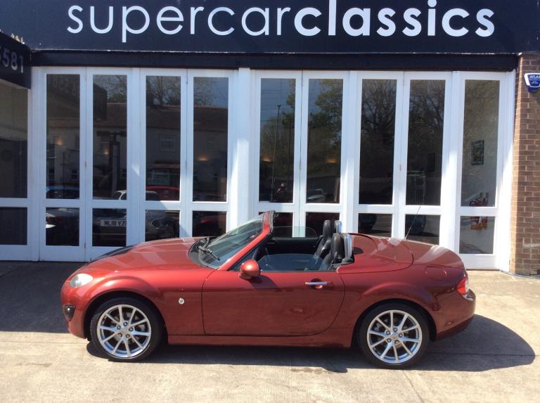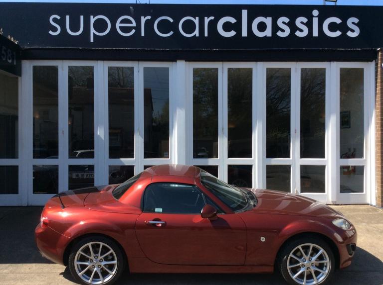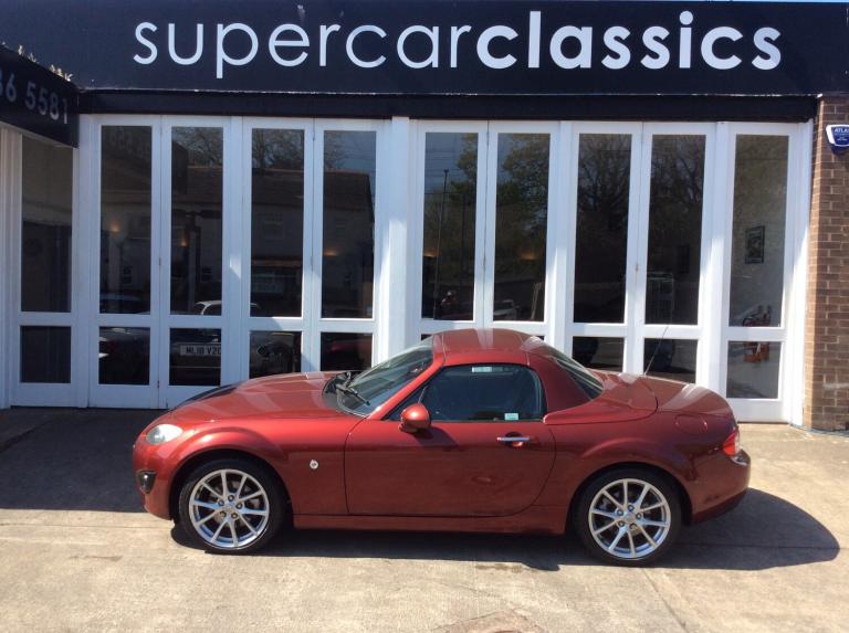 Finished in Copper red, this model is the 2.0 Sport tech Coupe. It has heated black leather seats, 6 speed gearbox, climate control air conditioning, limited slip differential, traction control, cruise control, central locking with alarm, power steering, 17"" alloy wheels, Bose 6 CD radio with bluetooth phone and electric folding solid roof, which stows behind the seats so does not intrude on boot space. It has covered 98000 miles and was previously sold and serviced by ourselves. We take any vehicle in part exchange, MX5 or other makes., Buy from a long established MX5 and Small car specialist in the North West.