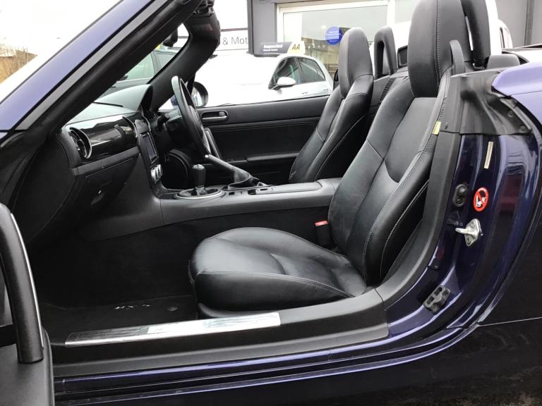 ** NEARLY FULL SERVICE HISTORY ** This 2013 Mazda MX-5 2.0i Sport Tech Roadster is a sleek and stylish convertible with only 115324 miles on the clock. Powered by a petrol engine with a manual transmission, this Euro 5 compliant car is both powerful and efficient. This one comes with a new MOT and ULEZ compliance, it's ready to hit the road. The 2-seater car with 2 doors is equipped with 17in alloy wheels, body-coloured bumpers, door handles and electrically adjustable, heated mirrors. It also features electric windows for added convenience. This sporty Mazda MX-5 is a fantastic choice for a thrilling driving experience with a touch of luxury. Features Include: , 17in alloy wheels, bumpers - body coloured, door handles - body coloured, door mirrors - electrically adjustable - heated - body coloured, electric windows - front, exhaust tailpipes - twin, windblocker - standard, 6cd changer, aux socket, integrated bluetooth system, premium bose sound system, speakers x7, usb and aux connection, abs - anti lock braking system, airbags - driver, airbags - front passenger, airbags - front passenger deactivation system, central locking - remote with deadlocking, dsc - dynamic stability control, eba - emergency brake assist, ebd - electronic brakeforce distribution, lsd - limited slip differential, mazda advanced impact distribution and absorption system - maidas, side airbags, tcs - traction control system, thatcham category 1 alarm and immobiliser, air conditioning - climate control, auto dimming rear view mirror, gear knob - leather, handbrake - leather wrapped, pedals - alloy, pollen filter, remote boot release, scuff plates - stainless steel, seatback pocket - passenger side, seats - drivers dial reclining and height adjustment, seats - front heated, seats - front sports, steering wheel - leather, steering wheel - mounted remote audio controls, style bar trim, cruise control, power assisted steering, sport suspension - bilstein damper, trip computer, front fog lights, headlights - halogen