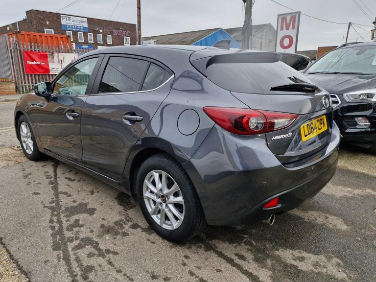 Mazda Mazda3 2.0 SKYACTIV G SE L Nav Hatchback 5dr Petrol Auto Euro 5 s s 120 ps Grey Exterior Introducing the striking Mazda3 2.0 SKYACTIV G SE L Nav Hatchback in a sleek Grey finish, offered by Key Auto Sales in Braintree, Essex. This dynamic hatchback boasts a sporty yet sophisticated silhouette, enhanced by its signature KODO design language. The aerodynamic contours not only add to its aesthetic appeal but also improve fuel efficiency. Equipped with stylish alloy wheels and LED daytime running lights, this Mazda3 ensures you stand out wherever the road takes you. Interior Step inside to experience a perfect blend of style and functionality. The spacious cabin features premium cloth upholstery, creating a comfortable environment for both driver and passengers. With ample legroom and a generous boot capacity, it s ideal for everyday errands or weekend getaways. The intuitive layout of controls, enhanced by a user friendly touchscreen display, makes for an enjoyable driving experience. Thoughtful storage solutions can accommodate all your essentials while maintaining a clutter free space. Performance Under the hood, the 2.0 litre SKYACTIV G engine delivers a spirited 120 ps, making every drive an exhilarating experience. Paired with a seamless automatic transmission, the Mazda3 offers smooth acceleration and responsive handling, perfect for navigating both city streets and open roads. It achieves excellent fuel efficiency, making it a wise choice for daily commuters and environmentally conscious drivers alike. Technology Stay connected and entertained with an advanced infotainment system, featuring satellite navigation and Bluetooth connectivity. The integrated touch screen allows for easy access to your favourite apps and music. Safety features such as ABS, and multiple airbags ensure peace of mind on every journey. Whether you re a dynamic professional or a growing family, this Mazda3 embodies value, practicality, and flair. Experience the perfect combination of comfort and performance at Key Auto Sales, where your driving pleasure awaits