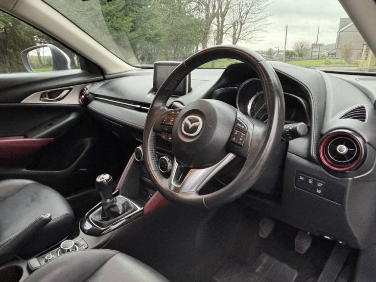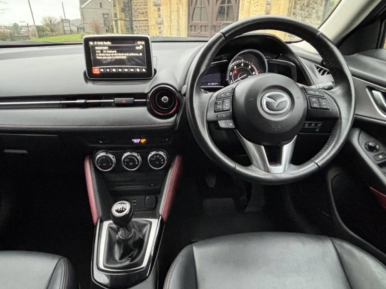 2015 MAZDA CX-3 1.5 SKYACTIV-D SPORT NAV SUV...5 DOOR...6 SPEED MANUAL...DIESEL...EURO 6 (105ps)...ONLY 81,284 MILES...8 SERVICES...2 KEYS...£20 TAX...COMES WITH...MULTI-FUNCTION STEERING WHEEL...CRUISE CONTROL WITH LIMITER...REVERSING CAMERA WITH PARKING SENSORS...NAVIGATION...FRONT HEATED LEATHER SEATS...MULTI-FUNCTION CONTROLER...ELECTRIC WINDOWS FRONT AND REAR...CHILD LOCK...ELECTRIC MIRRORS...HEADS-UP DISPLAY...AUTO START/STOP...AUTOMATIC LIGHTS...LED DAY-TIME RUNNING LIGHTS...AUTOMATIC WIPERS...LANE ASSIST...DAB-AM-FM RADIO...CD PLAYER...BLUETOOTH...AUX...2 USB-AUX...12V PORT...AIR-CON...BOSE SPEAKERS...SUNGLASSES HOLDER...FOG LIGHTS FRONT AND REAR...TYRE PRESSURE RESET BUTTON...TYRE REPAIR KIT...18 INCH 10 SPOKE ALLOY WHEELS...COMES WITH 12 MONTH NON ADVISORY MOT...3 MONTH NO QUIBBLE WARRANTY...FREE 12 MONTH AA BREAKDOWN COVER...FINANCE AVAILABLE...PART EXCHANGE WELCOME.12V Power Socket - Front, 18in Alloy Wheels - Gun Metallic Diamond-cut, 7in Colour Touch Screen Display, Adjustable Speed Limiter, Aha App and Stitcher App Integration, Air Conditioning - Automatic Climate Control, Air Vents - Piano Black Surround with Dark Red Inner Ring, Airbags - Curtain Front, Airbags - Curtain Rear, Airbags - Driver, Airbags - Front Passenger, Airbags - Front Passenger Deactivation System, Anti Lock Braking System - 4W-ABS, AUX Socket, Bluetooth Audio Streaming, Bluetooth Hands Free System, Ceramic, Courtesy Light with Integral Spotlights, Cruise Control, Cupholder - Centre Console x2, DAB Radio, Dashboard Panel - Black - Soft-touch with Stitching, Deadlocking, Digital Speedometer, Door Mirrors - Electrically Adjustable-Heated-Folding-Turning Signal, Door Pockets - Front, Door Pockets - Rear, DSC - Dynamic Stability Control, Dusk Sensing Automatic Headlights, EBA - Emergency Brake Assist, EBD - Electronic Brakeforce Distribution, Electric Windows - Front and Rear with One Touch Auto Up and Down on Drivers Side, Emergency Stop Signalling System - ESS, Engine Start-Stop Button, Exhaust Tailpipes - Twin, Front Fog Lights - LED, Front Knee Pads - Dark Red - Soft-touch with Stitching, Front Side Airbags, Gear Knob - Leather-Wrapped with Satin Silver Surround, Gear Shift Indicator, Glovebox Illumination, Grab Handles - Front Passenger, Grab Handles - Two Rear with Coat Hooks, Handbrake - Leather Wrapped, Head Up Display, Headlights - Adaptive Front Lighting System, Headlights - Automatic Levelling, Headlights - Coming-Leaving Home, Headlights - LED, Hill Hold Assist, Immobiliser, Inner Door Handles - Satin Silver, ISOFIX Child Seat Anchorage for Outer Rear Seats, Lane Departure Warning System, Leather-Lux Suede - Stone-Black with Red Piping, LED Daytime Running Lights, Luggage Compartment - Flexible Floorboard for Adjustable Floor Height or Secure Separate Storage Space, Luggage Compartment - Light, Luggage Compartment - Tonneau Cover, Mazda Advanced Impact Distribution and Absorption System - MAIDAS, Multimedia Commander, Overhead Console with Sunglassess Holder, Pollen Filter, Power Assisted Steering - Electronic, Premium BOSE Sound System, Privacy Glass - Rear and Rear Side Windows, Radiator Grille - Chrome-accent, Radio-CD, Rain-Sensing Front Wipers, Rear Lights - LED, Rear Parking Sensors, Rear View Mirror - Manual - Day and Night Mode, Reversing Camera, Satellite Navigation - European Mapping with 3-years Map Updates, Satellite Naviga