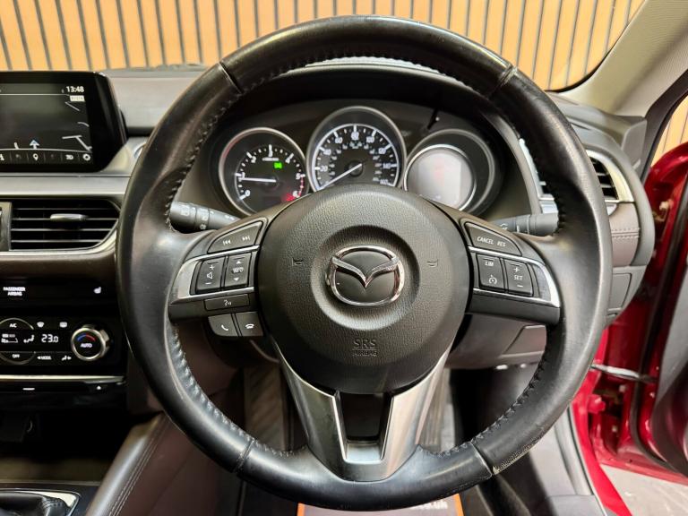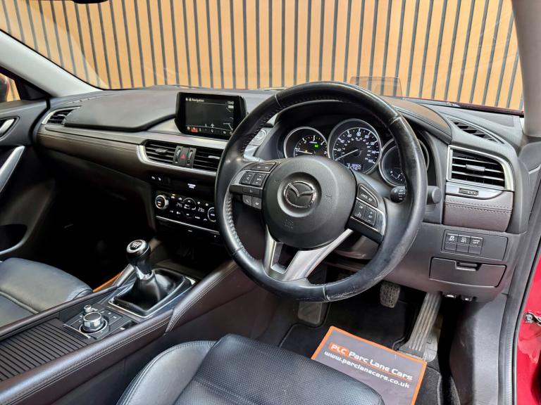 ONLY £35 ROAD TAX PARC LANE CARS OF GOSFORTH PRESENT THIS BEAUTIFUL LOW MILEAGE MAZDA 6 2.2 SPORT NAV. FINISHED IN SOUL RED METALLIC WITH STUNNING CONTRASTING BLACK LEATHER INTERIOR TRIM! THIS MAZDA 6 HAS COVERED ONLY 65000 MILES AND COMES WITH A COMPREHENSIVE SERVICE HISTORY, SERVICED AT THE FOLLOWING INTERVALS; 7968 MILES - 19/04/2016 13658 MILES - 31/08/[Phone number removed] MILES - 09/05/[Phone number removed] MILES - 27/02/[Phone number removed] MILES - 22/01/[Phone number removed] MILES - 10/06/[Phone number removed] MILES - 16/07/[Phone number removed] MILES - 05/08/[Phone number removed] MILES - 24/07/[Phone number removed] MILES - 17/07/2025 FITTED WITH THE FOLLOWING FACTORY EXTRAS; LEATHER INTERIOR TRIM BOSE SOUND HEATED FRONT SEATS MEMORY SEATS CLIMATE CONTROL CRUISE CONTROL ALLOY WHEELS AND MUCH MUCH MORE.... THIS CAR IS SIMPLY STUNNING AND IS NOT TO BE MISSED!! FINANCE IS AVAILABLE AND PART EXCHANGE IS WELCOME REG NO. NJ65 MWN ** LISTED SPECIFICATION IS SHOWN AS ACCURATELY AS POSSIBLE. ERRORS MAY OCCUR. PLEASE ASK US TO CLARIFY IF YOU HAVE ANY QUERIES. ** Features Include: , 12v power socket - front, aux socket, dab radio, integrated bluetooth system, multimedia system, premium bose centrepoint surround sound system, radio-cd, satellite navigation - european mapping with 3-years map updates, satellite navigation - powered by tomtom technology, speakers x11, touch screen - 7in colour tft, usb connection x2, ipod connectivity, 19in alloy wheels - bright finish, door handles - body coloured, door mirrors - electrically adjustable-heated-folding, door mirrors - integrated turning signals, electric windows - front and rear with timer function, exhaust tailpipes - twin, privacy glass - rear and rear side windows, tyre repair kit, abs - anti lock braking system, airbags - curtain front, airbags - curtain rear, airbags - driver, airbags - front passenger, airbags - front passenger deactivation system, dsc - dynamic stability control, deadlocking, electronic parking brake, emergency stop signalling system - ess, front side airbags, hill hold assist, isofix child seat anchorage for outer rear seats, immobiliser, scr - secondary collision reduction, srs - supplementary restraint system, seatbelt reminder for front and rear, smart city brake support, smart keyless entry, tcs - traction control system, thatcham catergory 1 alarm, adjustable speed limiter, cruise control, electronic power assisted steering, gear shift indicator, head up display, multimedia commander, parking sensors - front, rear