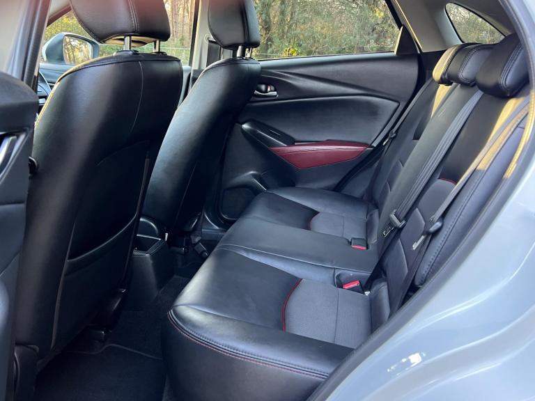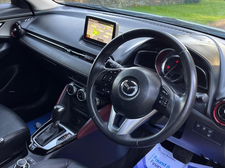 Open by appointment please call Automatic Satellite Navigation Reverse Camera Bose Sound System Half Leather Interior Heated Seats HUD Head Up Display DAB Digital Radio Bluetooth Phone Connectivity/Audio 5 Services MOT until December 2026 with no advisories Ready to drive away This 2015 Mazda CX-3 SKYACTIV-G Sport Nav presents an exceptional opportunity with its remarkably low mileage of just 42,000 miles. This Euro 6 compliant 2.0 litre petrol model boasts a clear vehicle history check, assuring you of its sound provenance. Inside, you'll find a wealth of desirable features including automatic climate control, heated front seats for added comfort, and a Bluetooth hands free system for seamless connectivity. Navigating tight spots is made easier with the integrated reversing camera, and the LED headlights provide excellent visibility.This Sport Nav variant offers a compelling package of benefits that set it apart. Its impressive fuel economy of 49 mpg means fewer trips to the petrol station, while its low CO2 emissions contribute to a more environmentally friendly drive. Furthermore, its low insurance group rating can help to keep your running costs down. These highlights demonstrate how this Mazda CX-3 offers a more economical and efficient ownership experience compared to many other vehicles in its class.