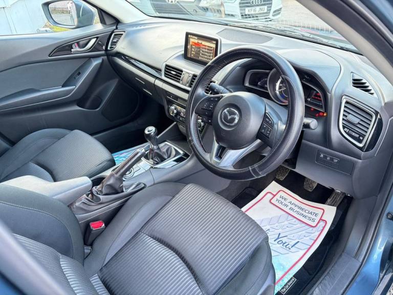 This 2015 Mazda3 SKYACTIV-G SE-L Nav presents a compelling proposition with its remarkably low mileage of just 56,790 miles, a testament to its careful ownership. Having had only two owners since new, this petrol model boasts a 2.0L engine and the SE-L Nav trim, offering a refined driving experience. Inside, youll find comfort and convenience with dual zone climate control, heated front seats, and a combined Bluetooth system for phone calls and audio streaming. The Bi-Xenon headlights provide excellent visibility, while rear parking sensors make manoeuvring in tight spaces effortless. The Mazda3 SKYACTIV-G SE-L Nav stands out from its peers with several key advantages. Its acceleration from 0-62mph in just 8.9 seconds offers a responsive and engaging drive. Furthermore, its low insurance group rating means potentially lower running costs, making it an economical choice. Practicality is also a strong point, with generous boot space designed to accommodate your luggage or shopping needs with ease. Navigation HDD Parking Sensor Climate Control Tyre Inflation Kit 1 YEAR MOT INC FULL SERVICE INC 6 MONTHS WARRANTY INC 12 months free breakdown AA cover included FREE TEMPORARY DRIVEAWAY INSURENCE COVER INCLUDED 2 KEYS ALLOYS Tyre Inflation Kit ELECTRIC WING MIRRORS Heated Front Seats BEST USED CAR DEALS.12V Power Socket - Front, 16in Alloy Wheels, ABS - Anti Lock Braking System, Adjustable Speed Limiter, Aha App and Stitcher App Integration, Air Conditioning - Dual Zone Climate Control, Airbags - Curtain Front and Rear, Airbags - Driver, Airbags - Front Passenger, Airbags - Front Passenger Deactivation System, Armrest - Front Centre with Storage Box, Armrest - Rear Centre with Cupholders x2, Audio Systems - AM-FM Radio-CD Player, Auto Dimming Rear View Mirror, Body Coloured Door Mirrors, Combined Bluetooth Phone and Audio Streaming System, Cruise Control, Cupholder - Front x2, DSC - Dynamic Stability Control, Dashboard Decoration Panel - Piano Black, Deadlocking, Door Handles - Body Coloured, Door Mirrors - Electrically Adjustable-Heated-Folding, Door Pockets - Front, Dusk Sensing Automatic Headlights, Electric Windows - Front and Rear with One Touch Auto Up and Down on Drivers Side, Emergency Stop Signalling System - ESS, Engine Start-Stop Button, Front Fog Lights, Front Side Airbags, Gear Knob - Leather, Glovebox Illumination, Grab Handles - Front Passenger and Two Rear with Coat Hooks, Handbrake - Leather Wrapped, Head Restraints - Rear, Headlights - Automatic Levelling, Headlights - Bi-Xenon, Headlights - Cleaning, Hill Hold Assist, ISOFIX Child Seat Anchorage for Outer Rear Seats, Immobiliser, Interior Light Dome with Integral Spot Light, LED Daytime Running Lights, Luggage Compartment - Light, Multimedia Commander, Overhead Console with Sunglassess Holder, Power Assisted Steering - Electronic, Privacy Glass - Rear and Rear Side Windows, Rain-Sensing Front Wipers, Rear Lights - LED, Rear Parking Sensors, Remote Central Locking, SCR - Secondary Collision Reduction, Satellite Navigation System, Seatback Pocket - Passenger Side, Seatbelt Reminder for Front and Rear, Seats - 60-40 Split Folding Rear, Seats - Drivers Dial Reclining and Height Adjustment, Seats - Drivers Manual Lumbar Adjustment, Seats - Front Heated, Shark Fin Antenna, Smart City Brake Support, Speakers x6, Spoiler - Rear Roof, Steering Wheel - Leather, Steering Wheel - Mounted Remote Audio Controls, Steering Wheel - Tilt and Height Adjustment, Sunvisors - Drivers and Passengers with Covered Vanity Mirror-Ticket Holder-Illumination, TCS - Traction Control System, Tailpipes - Dual Chrome, Thatcham Category 1 Alarm and Immobiliser, Touch Screen - 7in Colour TFT, Trip Computer, Tyre Pressure Monitoring System, Tyre Repair Kit, USB and AUX Connection, iPod Connectivity