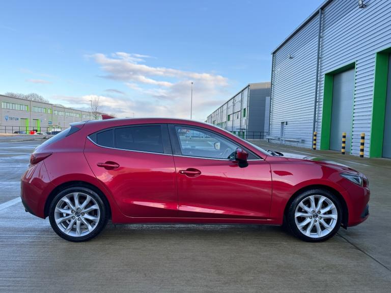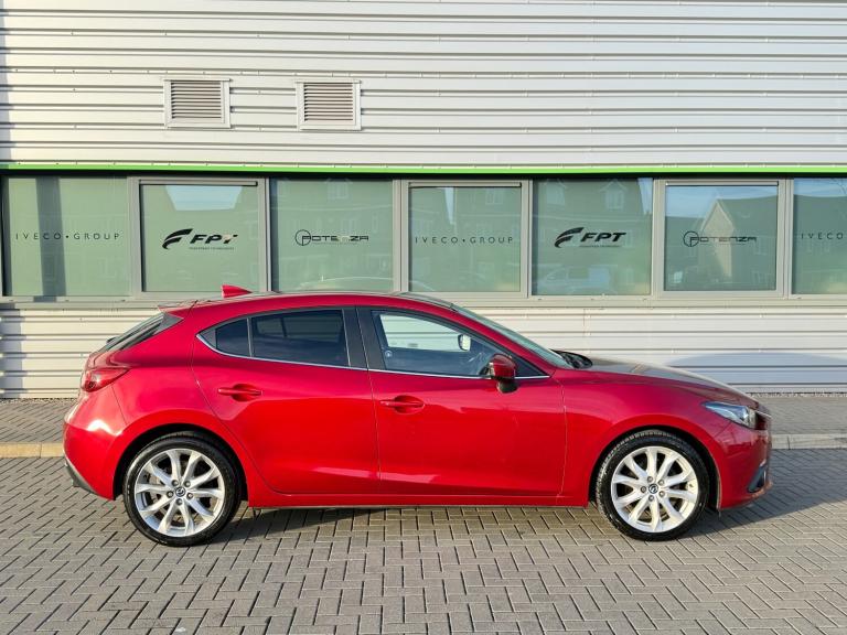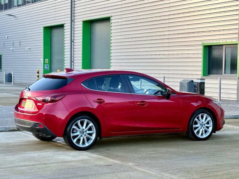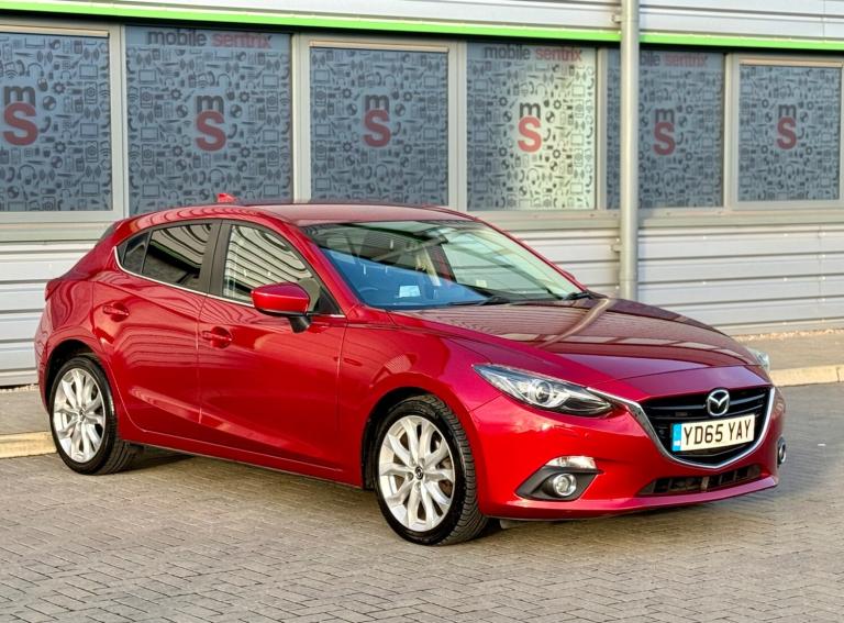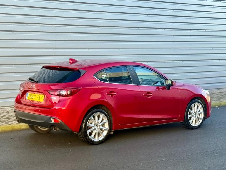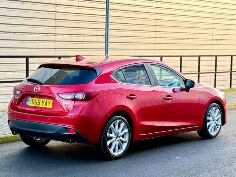 This 2015 Mazda Mazda3 SKYACTIV-G Sport Nav boasts a full dealership service history from its one previous owner, ensuring excellent provenance and in the best colour. Last serviced at 79141 miles, nationwide parts and labour warranty available, 12 months free breakdown cover, 2 keys, nationwide delivery, This 2.0 litre petrol model, compliant with Euro 6 emissions standards, comes equipped with a host of desirable features. Enjoy the convenience of integrated Bluetooth, heated front seats for comfort, and dusk sensing automatic headlights. Parking is made easier with front and rear parking sensors, and the steering wheel paddle shifts offer an engaging driving experience. Cruise control, bluetooth and media connectivity, Bose sound system. The Mazda3 SKYACTIV-G Sport Nav stands out with its impressive acceleration, reaching 0-62mph in just 10.4 seconds, indicating a responsive performance compared to similar vehicles. Furthermore, its low insurance group rating suggests more affordable running costs, and the generous boot space provides ample practicality for everyday needs and longer journeys.Clean car inside and outside, any inspection welcome, any questions please contact us.