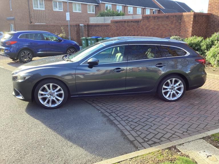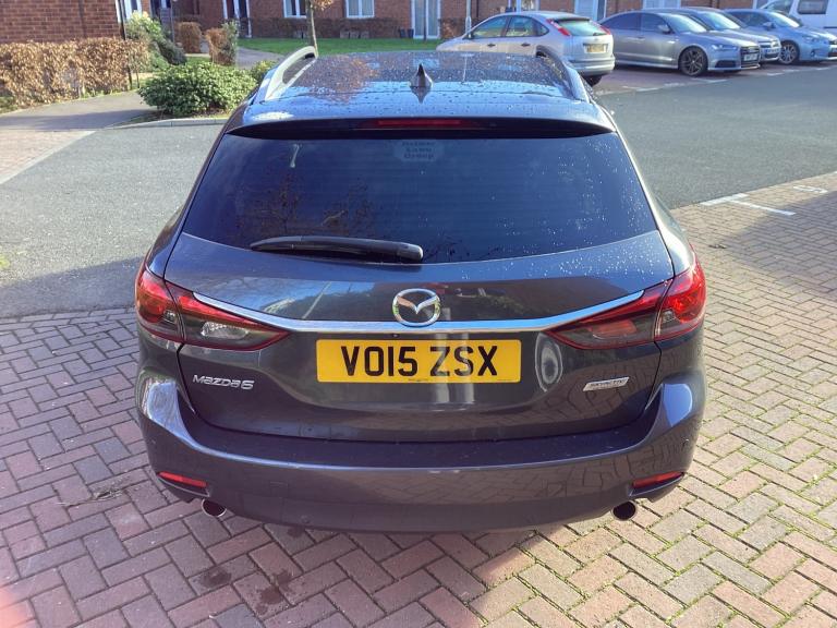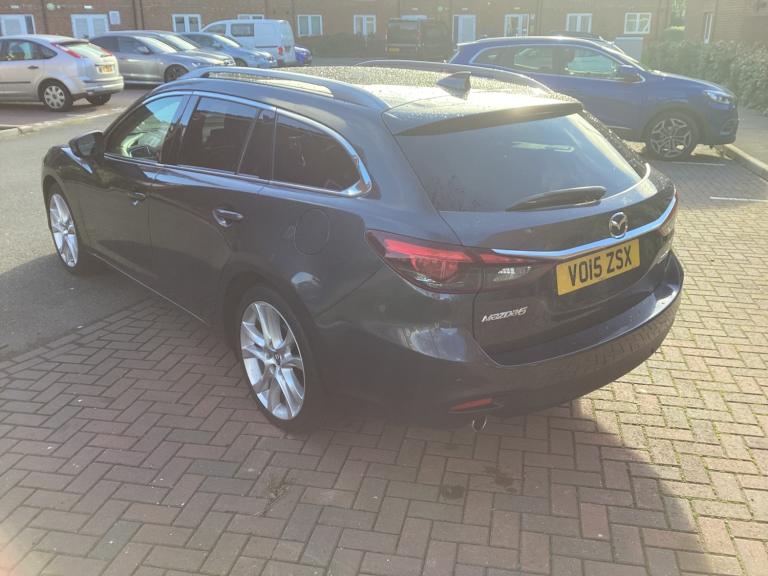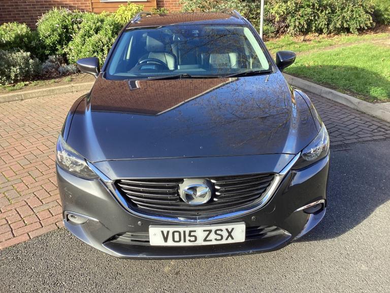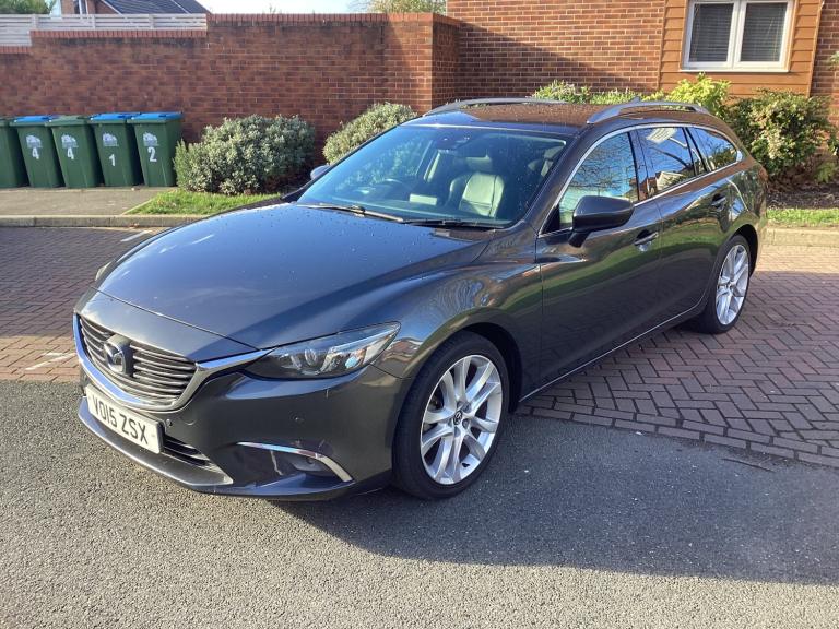 MAZDA 6 SKY ACTIV D-SPORT NAV TOURER 2.2 DIESEL AUTOMATIC. 2015, ULEZ COMPATIBLE.Full main agent service history,NEW MOT UNTIL DECEMBER 2026 with no Advisories.Finished in metallic Metoar grey with black full leather 180 bhp model, Fitted with electric windows, Remote central locking, Remote door mirrors, 2 sets of keys, 17 inch cross spoke alloy wheels, Cruise control, front fog lights. Dual climate control, Air Conditioning, Electric driver seat, Start stop, Automatic, Paddle shift, Steering Wheel controls, DAB RADIO, BLUETOOTH, AUX, SATELLITE NAVIGATION, REAR CAMERA 7 inch internal screen, Front and rear parking sensors, ISOFIX, ROOF RAILS, USB, BOSE STEREO SYSTEM. I POD, FULL SERVICE HISTORY WITH 12 main services. Timing chain replaced 2024, A great example that drives superb. Please contact me for any further details anytime.