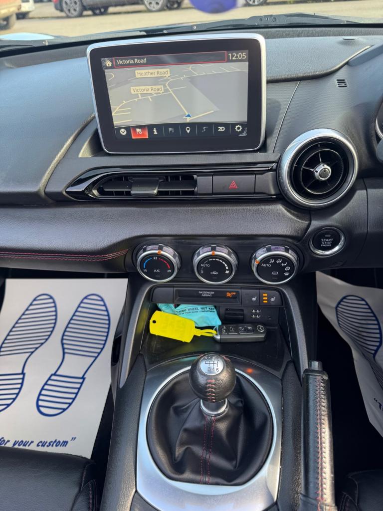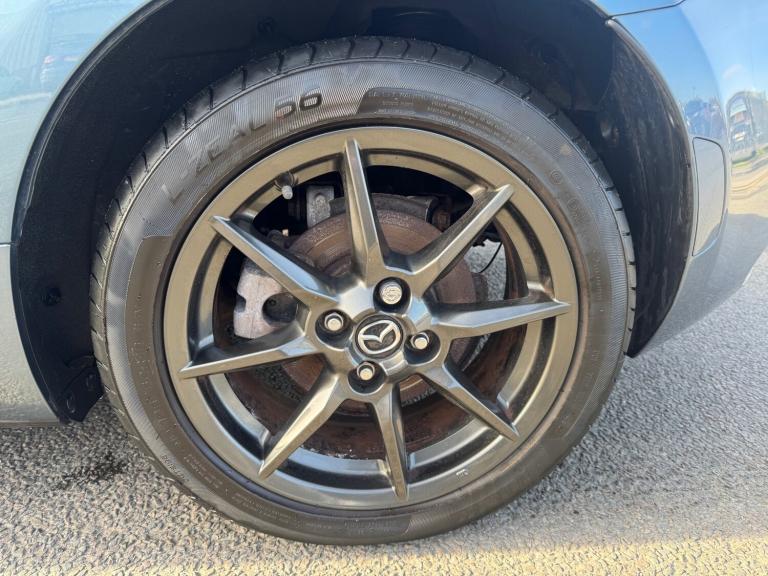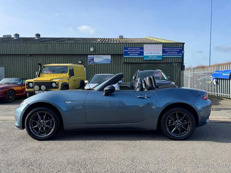 2015 (65) Mazda MX-5 1.5 Sport Nav 2dr in Blue. A highly stylish and reliable convertible sports car that is engaging and fun to drive. Manual opening and closing convertible soft top, very easy to do and means no possibility of electrical roof issues. Good Service History with 10 stamps (9 digital stamps). 2 Owner Car with 2 keys. Punchy chain driven 1.5 naturally aspirated petrol engine producing 129 BHP and 150 NM of Torque (0-60 in 8.3 seconds). Sport Nav which is a great specification with Large infotainment screen with Navigation, Bluetooth phone+music, Cruise control, Automatic lights/wipers, Keyless stop/start and entry/exit, Working air conditioning, Heated leather seats, Bose sound system, Lane assist, 6 speed manual gearbox, 16 inch alloy wheels, DAB Radio, Leather steering wheel/Gearknob/Handbrake lever, Rear parking sensors and more. December 2026 MOT, Fresh Service and 6 Months with the sale. Finance Available.