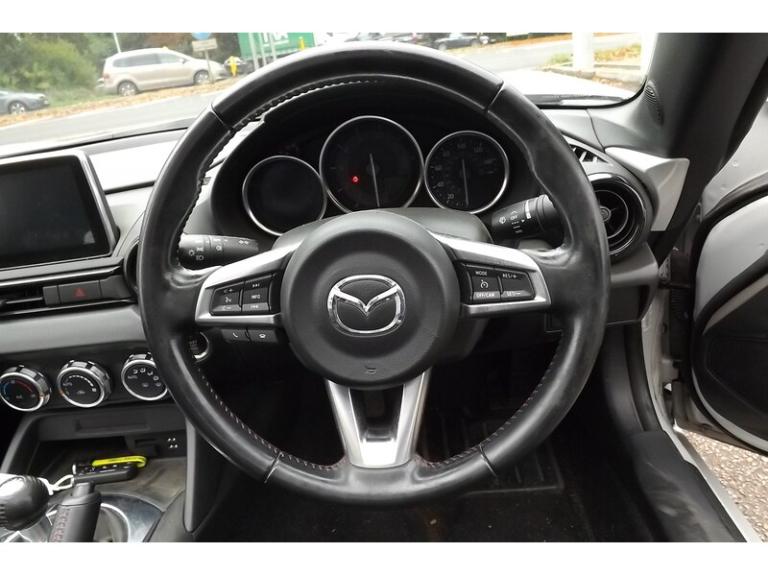 Here we have a very lovely looking Mazda MX-5 Skyactive -G SE-L Nav that has just arrived in part exchange. Just tow owners from new with fantastic service history. We will fully RAC check, service and MOT this car prior to delivery to its next discerning owner to ensure you the very best possible start. We will also post some better photos as soon as the car has been prepared & valeted, but please feel free to get in touch to arrange your viewing and test drive in the meantime. You can contact us via this website, or email us, or instant chat us anytime. You can also reserve this vehicle right now for just £99. You can fill out the finance application online anytime and get an immediate answer day or night. Part exchange's are always welcome and we guarantee to pay more the WBAC. UK wide, home delivery is always available, or you can ""click & collect"" if you prefer. Please do ring ahead if you are travelling to see this vehicle and we will take it off sale whilst you travel so you don't have a wasted journey. We have been selling quality New & Used vehicles for over 22 years with more than 13,0000 satisfied customers across the length and breadth of the UK. Please feel free to read our reviews and see what our lovely customers really think of us. If this is the car for you then we look forward to hearing from you and helping you achieve your Motoring goal. Should it not be quite what you are looking for then please get in touch and put us to the task of sourcing you your ideal vehicle, we have many contacts across the trade and can usually find a particular vehicle you require in a reasonable amount of time.. 7in Colour Touch Screen Display, Aha App and Stitcher App Integration, Audio Transfer from Bluetooth Devices, Auxiliary - AUX - and Two USB Input, Integrated Bluetooth, Multimedia System, Satellite Navigation System, USB - iPod Connectivity, Analogue Speedometer, Cruise Control with Manual Speed Adjustment, Gear Shift Indicator, Multimedia Commander, Trip Computer, Tyre Pressure Monitoring System, 16in Alloy Wheels - Silver, Body Coloured Door Mirrors, Convertible Top - Premium Cloth Soft Top with Heated Rear Window - Manually Operated, Dual Exhaust System, Electric Windows - One Touch Auto Down, Electrically Adjustable-Heated Door Mirrors, Emergency Tyre Repair Kit, Fashion Bar Cladding, Fuel Filler Lid - Body Colour, Windblocker, Headlights - Coming-Leaving Home, Headlights - LED with Auto Headlight Levelling, LED Daytime Running Lights, Rear Brake Light - High Mounted, Air Conditioning - Climate Control, Air Conditioning Dials - Chrome, Air Vent Surrounds - Black, Chrome Meter Rings, Coinbox, Cupholder - Front x2, Engine Start-Stop Button, Gear Knob - Leather with Chrome Surround, Handbrake - Leather Wrapped, Inner Door Handles - Chrome, Interior Courtesy Light, Interior Upper Door Trim - Body Coloured, Seats - Drivers Manual Slide-Recline and Tilt Adjustment, Seats - Front Passenger Manual Slide and Recline Adjustment, Side Door Trim - Black with Red Stitching, Steering Wheel - Leather with Chrome Bezel, Steering Wheel - Mounted Audio and Bluetooth Controls, Steering Wheel - Tilt Adjustment, Storage - Rear Centre Box with Lockable Lid, Sunvisors - Drivers and Passengers with Covered Vanity Mirror-Ticket Holder, Wipers - Front Adjustable Speed with Intermittent, Adjustable Speed Limiter, Double Pinion Electric Power Assisted Steering - DP-EPAS, Automatic Passenger Airbag Deactivation System, DHS - Deployable Hood System, Driver and Passenger Front Airbags, Dynamic Stability Control - DSC - with Traction Control System - TCS, Four-Wheel Anti-Lock Braking System - 4W-ABS with Electronic Brake-Force Distribution - EBD, Hill Hold Assist, ISOFIX Child Seat Anchorage - Passenger Seat, Remote Central Locking with Deadlocking and Remote Boot Release, Seatbelts - 3 Point - ELR - 2x with Pre-Tensioners, Seatbelts - Reminder Screen with Audible Warning, Side Airbags, SKYACTIV-Body Engineered Triple H Body Structure to Help Protect Occupants from Impact Forces, SRS - Supplementary Restraint System, Thatcham Category 1 Alarm and Immobiliser