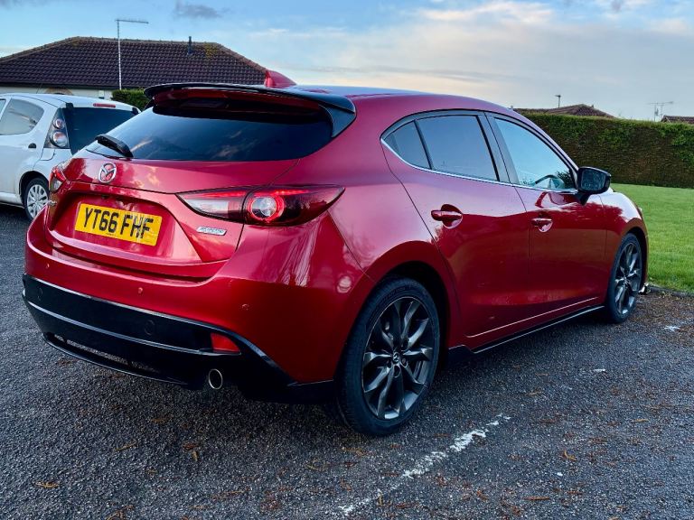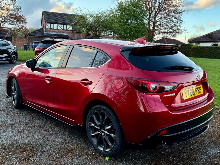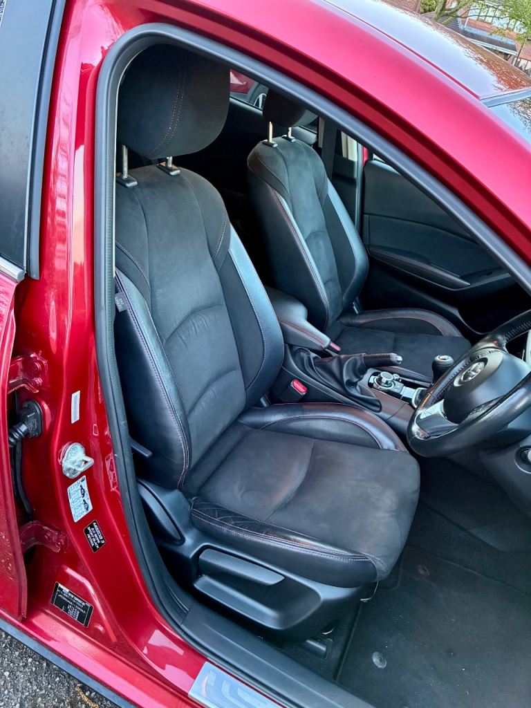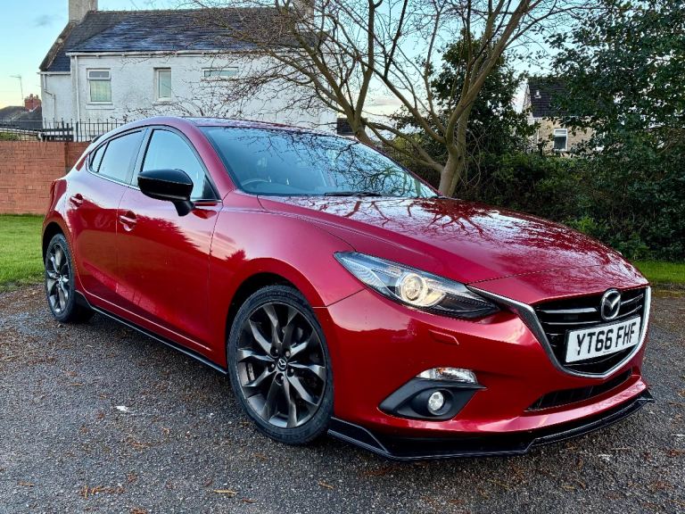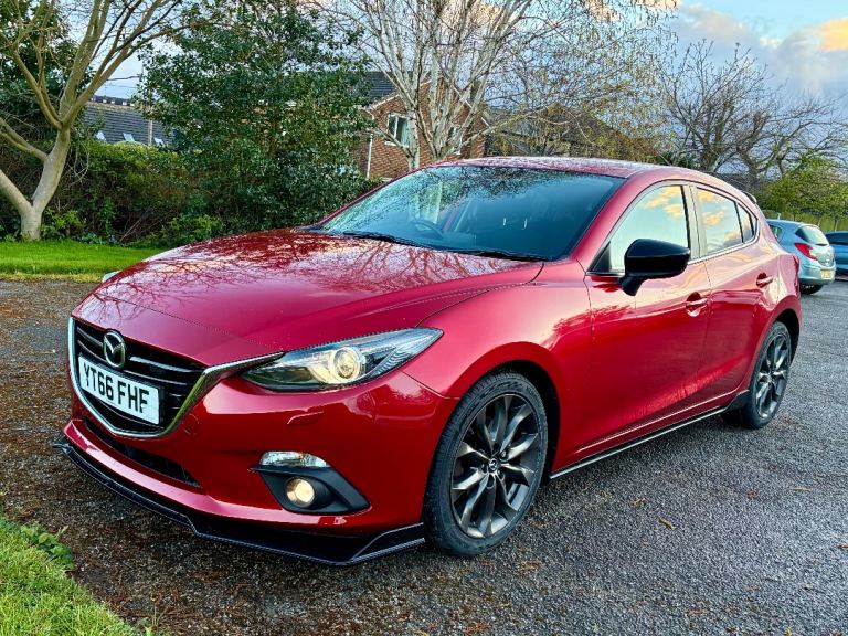 One of just 800 Sport Black editions produced for the UK market, this Mazda 3 is finished in Soul Red Metallic with the full Brilliant Black sports styling kit. A sharp, well-specified car that’s been properly looked after.