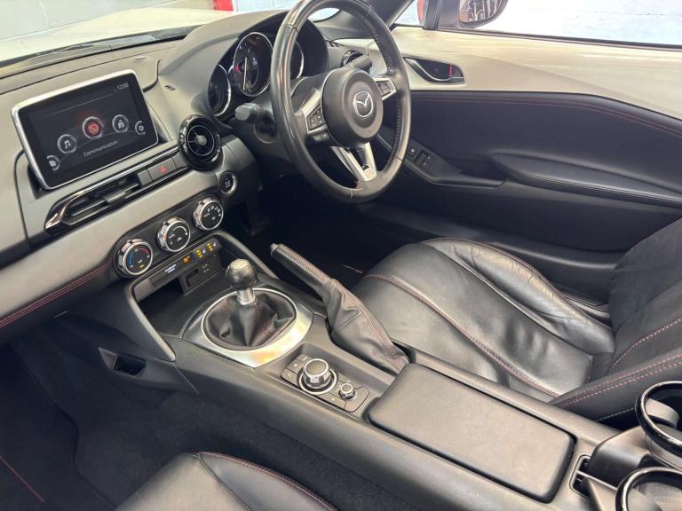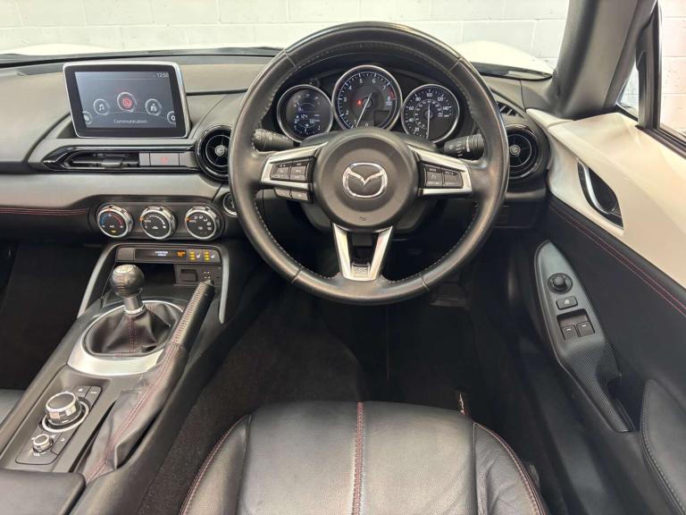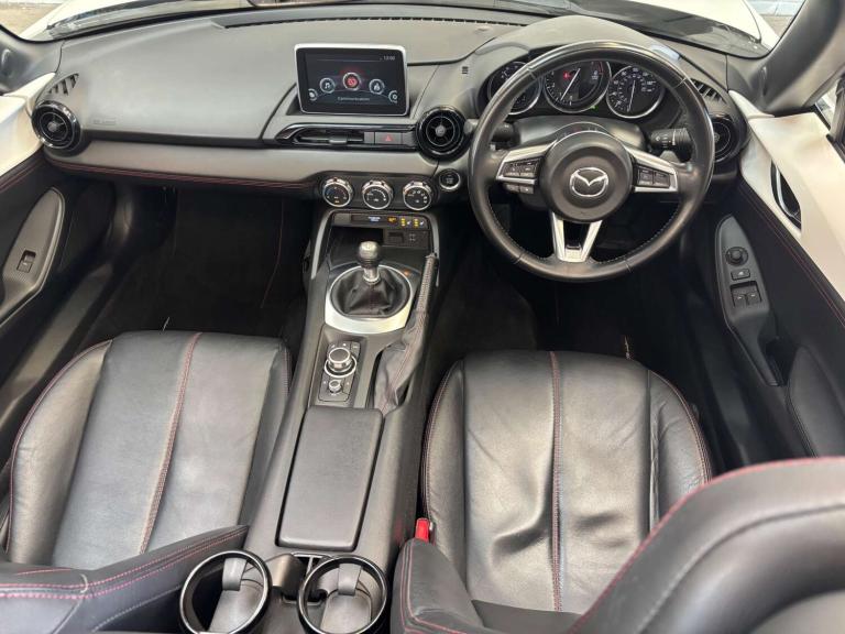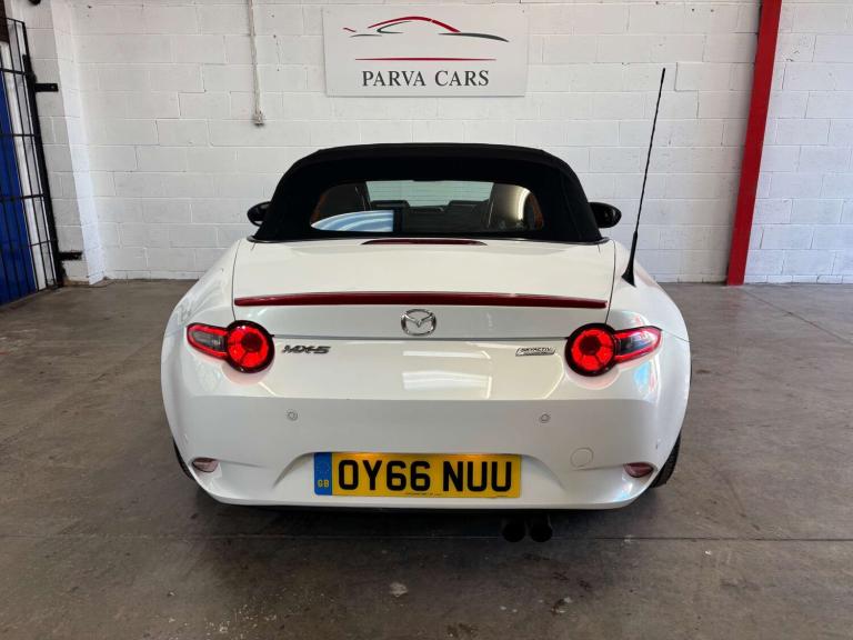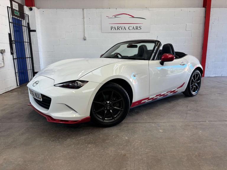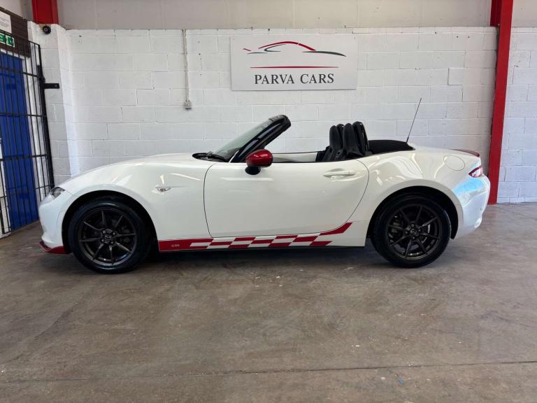 We Specialise selling MX-5's, check out our website for our up to date stock list. This MX-5 will be Supplied with a comprehensive 6 Month Unlimited Mileage Warranty a used car check and new MOT plus 12 months free AA breakdown cover. We offer Competitive Finance subject to status please call for a quotation or log onto our website to use our Finance Calculator. Two owners from new with full Mazda Service history. Finished in Crystal White Pearl Metallic with complementing Black leather upholstery. Heated front seats. Satellite Navigation, Bluetooth Phone Preparation. Cruise control or speed limiter. Multi function computer. Cupholders. Automatic Air conditioning. Multi function steering wheel. Rear Parking Sensors. Rain sensing wipers and automatic dipping rear view mirror. Electric wing mirrors. Automatic LED Headlights. Remote central locking with keyless start. Anthracite 16"" alloy wheels. Great condition throughout. Hpi Clear. Part Exchange Welcome. We are located in Cwmbran by appointment only, please contact Chris to book your appointment:- Call-Text or WhatsApp [Phone number removed]