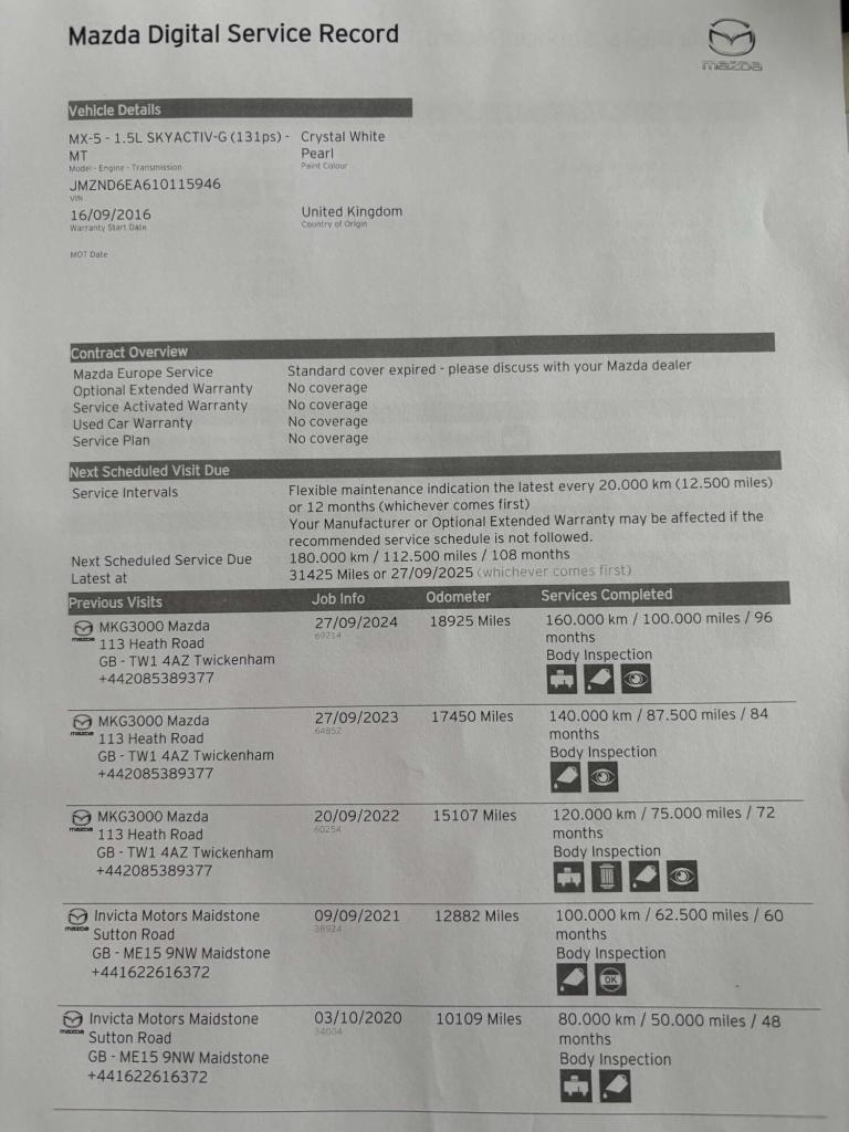 Posting for 9+ years2016 Mazda MX-5 1.5 MX-5 Icon 2dr Convertible Petrol Manual