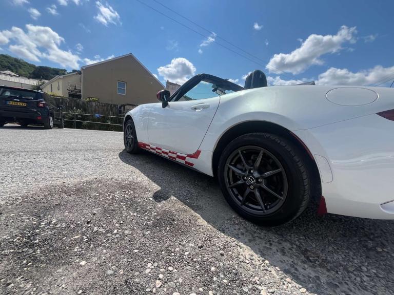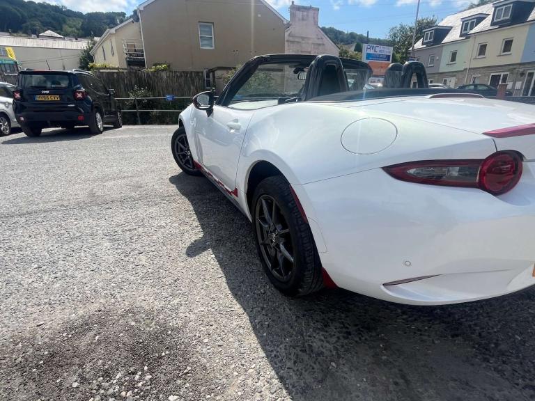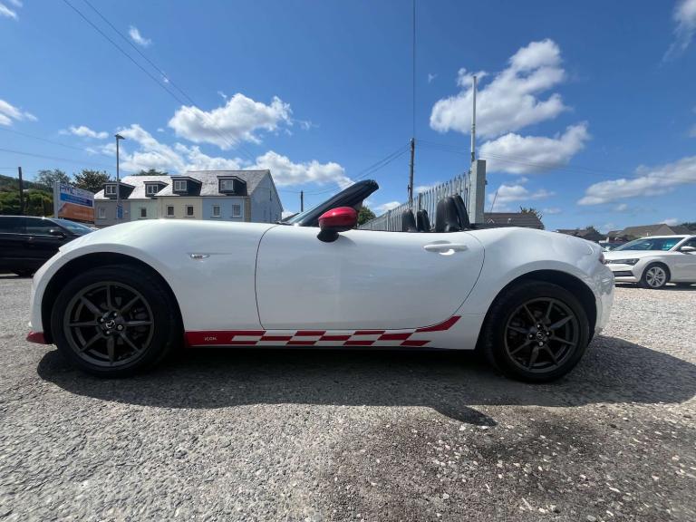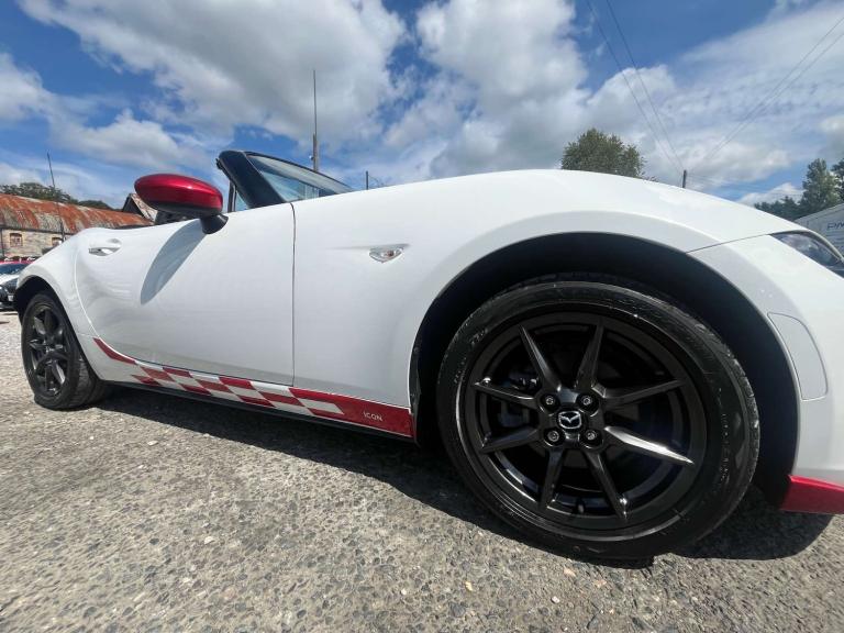 Introducing the Mazda Mx-5 1.5 MX-5 Icon 2dr - a true icon of driving pleasure and style. With just 15,000 miles on the clock, this stunning roadster is ready to deliver exhilarating performance and timeless elegance to its next owner. Finished in a pristine Crystal White, this Mazda Mx-5 is a head-turner on any road. The sleek lines and aerodynamic design are complemented by the luxurious Black Leather interior, creating a perfect blend of sophistication and sportiness. Having had only three careful owners, this Mx-5 has been cherished and maintained to the highest standards. It's not just a car; it's a statement of passion for driving. The 1.5-litre engine offers a spirited drive, ensuring every journey is an adventure. Whether you're cruising through the countryside or navigating city streets, the Mazda Mx-5 delivers an unmatched driving experience. Its lightweight design and precise handling make it a joy to drive, while the open-top freedom lets you soak in the beauty of the world around you. Don't miss the opportunity to own this exceptional Mazda Mx-5. It's more than just a car; it's a lifestyle. Visit us today and experience the thrill of driving an icon. Your perfect road companion awaits. We are car finance specialists and a multi award winning used car dealer, we have our own on site dedicated finance expert whatever your credit history, to apply online please go to [Website URL removed]. Over 100 cars and vans available. To arrange a viewing please call us, WhatsApp or Messenger. We also buy cars phone for cash, please call for an instant price today awardwinningdealerPlymouth autotrader highlyrated ? Features Include: , 16in alloy wheels - gunmetal, 7in colour touch screen display, adjustable speed limiter, aha app and stitcher app integration, air conditioning - climate control, air conditioning dials - chrome, air vent surrounds - black, analogue speedometer, audio transfer from bluetooth devices, automatic passenger airbag deactivation system, auxiliary - aux - and two usb input, chrome meter rings, coinbox, convertible top - premium cloth soft top with heated rear window - manually operated, cruise control with manual speed adjustment, cupholder - front x2, dhs - deployable hood system, double pinion electric power assisted steering - dp-epas, driver and passenger front airbags, dual exhaust system, dusk sensing automatic headlights, dynamic stability control - dsc - with traction control system - tcs,