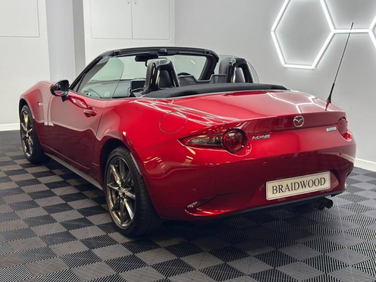 *** Recently Arrived, More images to Follow *** Finished in Soul Red with Black Leather interior. This car comes supplied 2 Keys, Service History, MOT and a minimum 6 Months Full Parts and Labour Platinum. Warranty. Key Features include, Climate Control, Heated Seats, LED Headlights, LED Daytime Running Lights, Navigation, Reverse Camera, Alloy Wheels, Bluetooth, Bluetooth audio, Air Conditioning, Parking Aid, Electric windows, Electric Mirrors, Multi Function steering Wheel, Trip Computer All Cars at Braidwood Motor Company are hand picked and are given a full inspection at our workshop before they are available for sale. Every car comes with a minimum 6 months executive warranty. Low rate finance packages are available. For More Information please call on 01506 444422 ***NATIONWIDE DELIVERY AVAILABLE***.17in Alloy Wheels - Bright Finish, 7in Colour Touch Screen Display, Adjustable Speed Limiter, Aha App and Stitcher App Integration, Air Conditioning - Climate Control, Air Conditioning Dials - Chrome, Air Vent Surrounds - Chrome, Analogue Speedometer, Audio Transfer from Bluetooth Devices, Auto Dimming Rear View Mirror, Automatic Passenger Airbag Deactivation System, Auxiliary - AUX - and Two USB Input, Body Coloured Door Mirrors, Chrome Meter Rings, Coinbox, Convertible Top - Premium Cloth Soft Top with Heated Rear Window - Manually Operated, Cruise Control with Manual Speed Adjustment, Cupholder - Front x2, DHS - Deployable Hood System, Double Pinion Electric Power Assisted Steering - DP-EPAS, Driver and Passenger Front Airbags, Dual Exhaust System, Dusk Sensing Automatic Headlights, Dynamic Stability Control - DSC - with Traction Control System - TCS, Electric Windows - One Touch Auto Down, Electrically Adjustable-Heated Door Mirrors, Emergency Tyre Repair Kit, Engine Start-Stop Button, Fashion Bar Cladding, Four-Wheel Anti-Lock Braking System - 4W-ABS with Electronic Brake-Force Distribution - EBD, Fuel Filler Lid - Body Colour, Gear Knob - Leather with Chrome Surround, Gear Shift Indicator, Handbrake - Leather Wrapped, Headlights - Adaptive Front Lighting System, Headlights - Coming-Leaving Home, Headlights - LED with Auto Headlight Levelling, Heated Seats, Hill Hold Assist, Inner Door Handles - Chrome, Integrated Bluetooth, Interior Courtesy Light, Interior Upper Door Trim - Body Coloured, ISOFIX Child Seat Anchorage - Passenger Seat, Lane Departure Warning System, LED Daytime Running Lights, LSD - Limited Slip Differential, Multimedia Commander, Multimedia System, Rain-Sensing Front Wipers, Rear Brake Light - High Mounted, Rear Parking Sensors, Remote Central Locking with Deadlocking and Remote Boot Release, Satellite Navigation System, Seatbelts - 3 Point - ELR - 2x with Pre-Tensioners, Seatbelts - Reminder Screen with Audible Warning, Seats - Drivers Manual Slide-Recline and Tilt Adjustment, Seats - Front Passenger Manual Slide and Recline Adjustment, Side Airbags, Side Door Trim - Black with Red Stitching, SKYACTIV-Body Engineered Triple H Body Structure to Help Protect Occupants from Impact Forces, Smart Keyless Entry, Soul Red, Sports Suspension, SRS - Supplementary Restraint System, Steering Wheel - Leather with Chrome Bezel, Steering Wheel - Mounted Audio and Bluetooth Controls, Steering Wheel - Tilt Adjustment, Storage - Rear Centre Box with