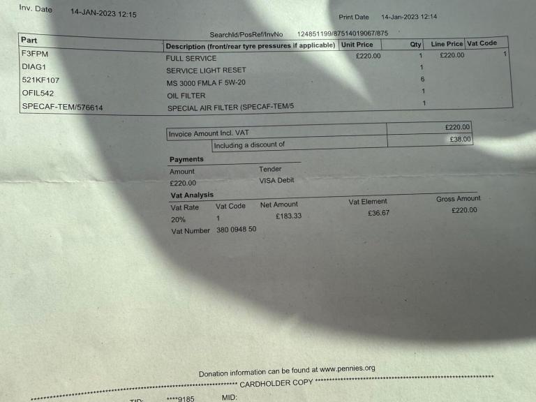 * New MOT and service with all cars.