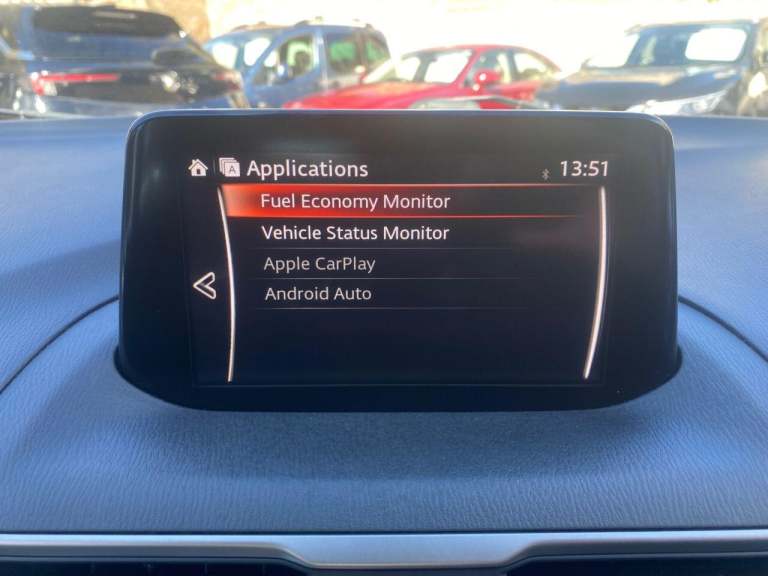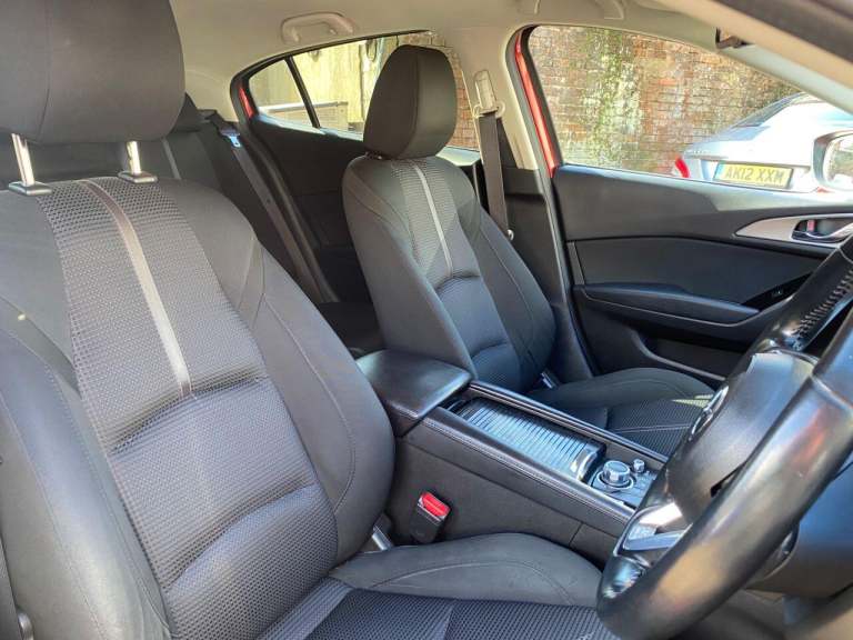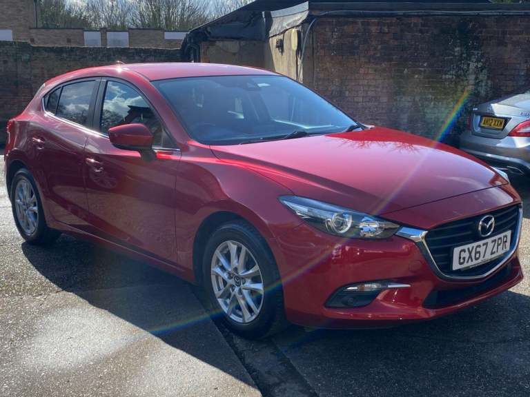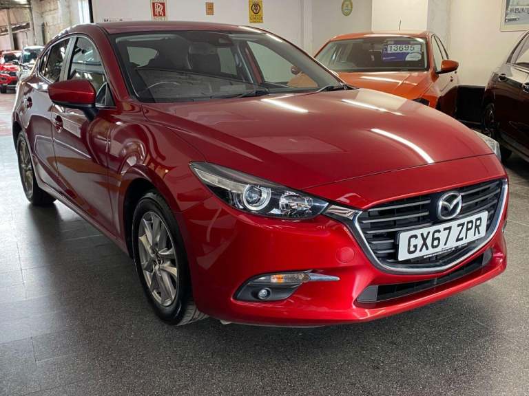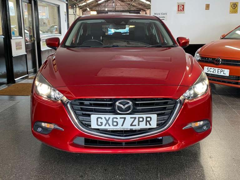 Finance From 9.9 APR. Just Three Owners from new & Full Documented Mazda & Independent Service History. High Seated Petrol Automatic, ULEZ Friendly, Fitted with carplay, satellite navigation, this Mazda 3 SE L Navigation model is finished in Soul Red Metallic Pearl with Heated Black cloth seats. It is fitted with rear park sensors, power steering, remote locking, electric windows and power folding mirrors, cruise control with speed limiter, climate control, Bluetooth, Xenon lights, 16 alloy wheels, DAB Stereo, USB, CD, privacy glass, rear boot mat and more. 2 keys. It has had three owners from new and comes with a full Mazda and independent service history consisting of 6 Mazda and 3 Independent invoices, done at 3566 5513 9083 [Phone number removed] [Phone number removed] 51694 and 62835 miles The current advisory free Mot runs till September. We will supply it with 6 months Insured RAC warranty, 12 months MOT and a service if required. Finance is available from 9.9 APR subject to status and extended warranties are available. This car is outstanding throughout, and has a superb specification. It has not carried pets or been smoked in. WHATSAPP Available 07967962192. LOW Rate Finance Available including PCP. For more information please visit [Website URL removed] or phone 01787 475329 07967962192, HIGH STREET LOCATION CARS UNDERCOVER IN SHOWROOM, p x considered