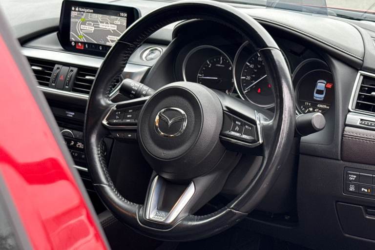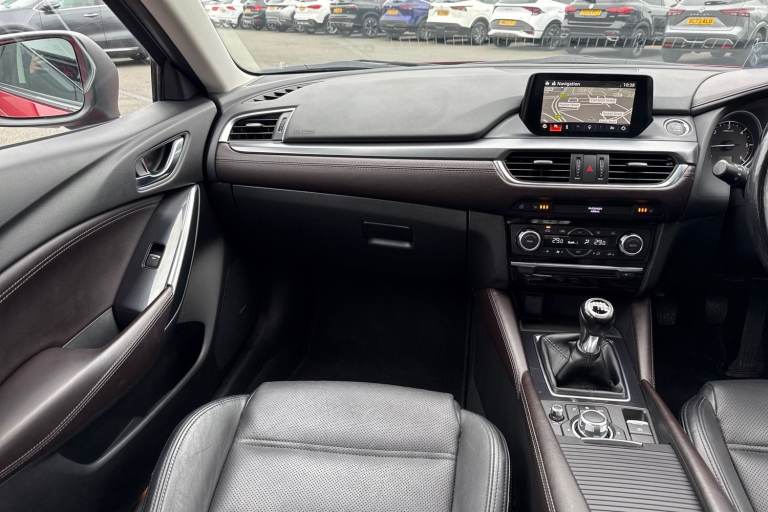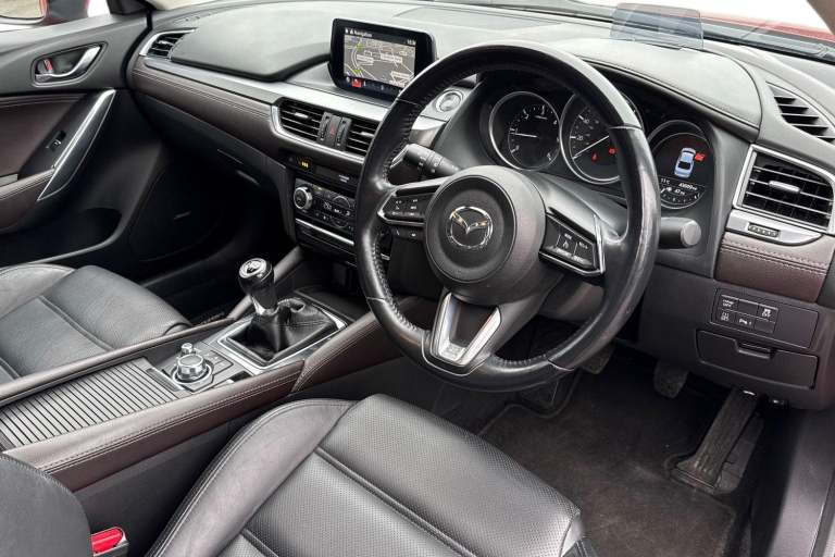 This Mazda Mazda6 2.2 SKYACTIV-D Sport Nav turns heads thanks to 19"" Bright Finish Alloy Wheels and a vibrant Red paint finish. Inside feels extra comforting with a Heated Leather Multifunction Steering Wheel alongside Heated Seats adding that extra touch of luxury. At the centre of the vehicle youll find an easy to operate multimedia display packed with features both entertaining and practical. Built in Satellite Navigation helps you find those newer destinations with ease while Bluetooth offers endless hour of entertainment via audio streaming and hands free calls. Take advantage of a wide variety of features designed to make your daily drive run that much smoother. Keyless Ignition makes setting off simple so theres no need to fumble around with your keys. Cruise Control makes motorway travel effortless while Parking Sensors alongside a Rear Camera gives you that extra level of confidence when dealing with tricky parking jobs. This vehicle is ULEZ Compliant! This vehicle is part of the Motor Match Promise that includes a minimum 30 days or 1,000 mile warranty whichever is sooner, RAC extended warranty of up to three years is available, along with flexible finance packages available. For more information, a personalised finance quote or to book a test drive, contact us today!