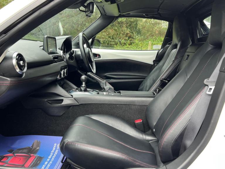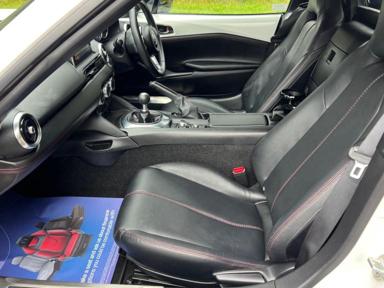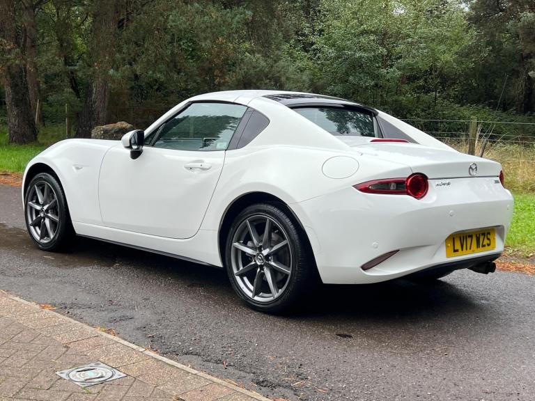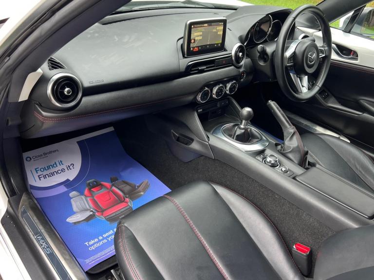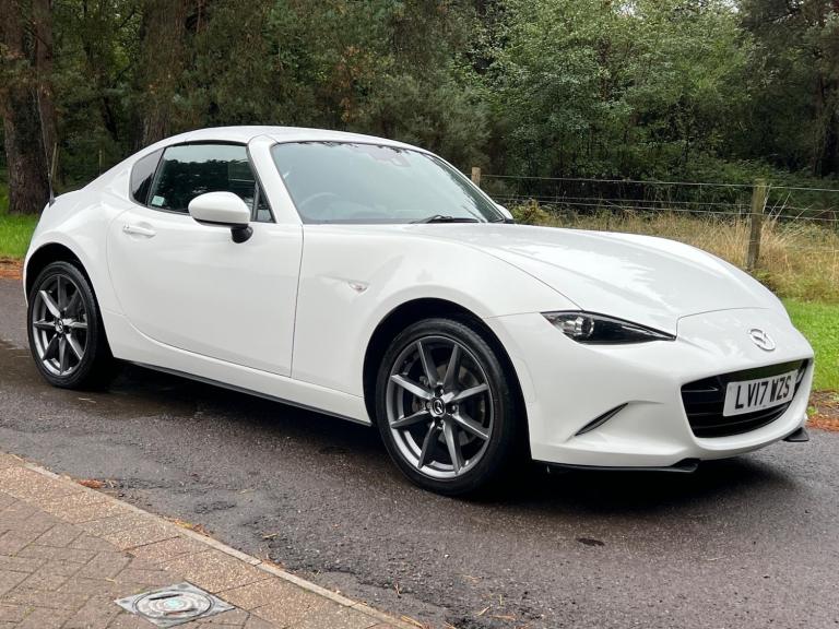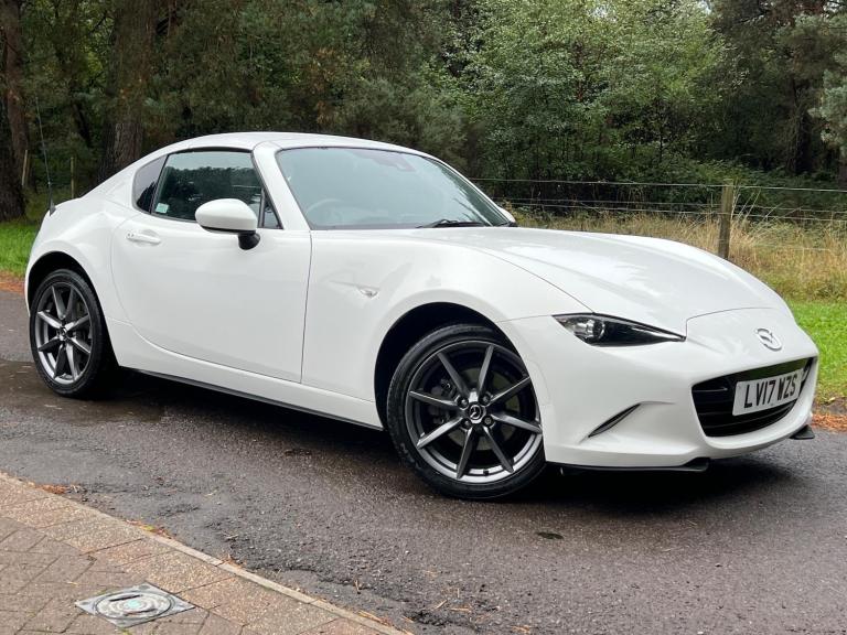 Open by appointment please call Electric Folding Hard Top Roof Satellite Navigation DAB Digital Radio Leather Interior Bose Sound System Cruise Control 6 Services 12 Months MOT IncludedThis 2017 Mazda MX-5 RF SKYACTIV-G Sport Nav boasts a clear vehicle history, offering peace of mind for its next owner. Powered by a responsive 2.0 litre petrol engine and meeting Euro 6 emissions standards, this Sport Nav model is equipped with rear parking sensors. Enjoy effortless access with Smart Keyless Entry and a comfortable driving environment thanks to the climate control air conditioning. The striking LED headlights with auto levelling ensure excellent visibility on every journey.The Mazda MX-5 RF SKY activ-G Sport Nav stands out with its desirable features, indicating a superior ownership experience compared to other vehicles. Its low insurance group rating makes it an economical choice for many drivers. This particular example has been meticulously maintained, as evidenced by its clear vehicle history check, ensuring you are acquiring a well cared for machine.