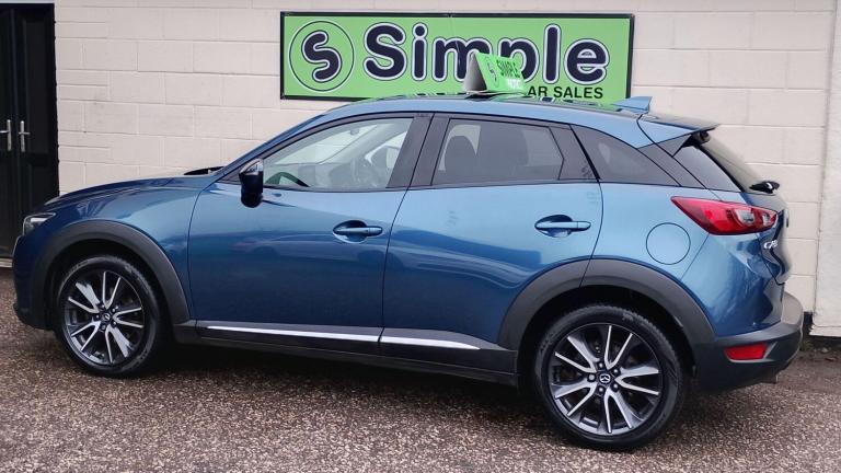 NEW STOCK ARRIVAL! We are delighted to offer for sale and new in to stock this fantastic, Mazda CX-3 2.0 SKYACTIV-G Sport Nav Euro 6 (s/s) 5dr for sale, finished in stunning Blue Metallic, with Contrasting Black 1/2 Leather interior. These really are fantastic cars to drive, whilst offering very versatile motoring with ample space they also offer fantastic reliability and economy. This is all complimented superbly by the smooth, powerful engine and gearbox, excellent road holding, an all round, very well balanced car. As you can see from the pictures it is a great looking car in amazing condition both inside and out - it has been looked after beautifully. It comes with a 12 month MOT (with no outstanding advisories) and it will be serviced before it goes. It has an excellent service history, it has four good tyres and it drives faultlessly. Engine, gearbox, brakes and exhaust are all working perfectly, leaving the new owner needing to spend nothing on it for the foreseeable future. The car comes with an excellent specification to include; Alloy Wheels, Air Conditioning, Bluetooth Phone, Privacy Glass to rear, Sat Nav, DAB Radio, plus much more. The car comes with a 3 month ''Simple Protect'' nationwide warranty which can be extended up to 12 months, should you wish. Part exchanges are welcome and we offer an excellent range or finance options. We can also arrange delivery directly to your door. In summary this car is beautifully specified and represents superb value for money and offers a great saving from its new price. If you would like further information feel free to get in touch. We are open Monday to Saturday but closed on Sunday's. However, we can arrange for a viewing on a Sunday by a pre arranged appointment if required. HPI Clear!