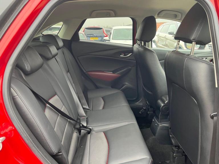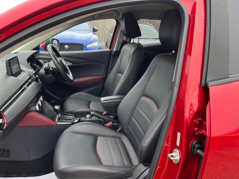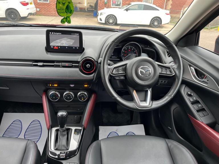 THIS STUNNING 1 FORMER KEEPER MAZDA CX-3 2.0 SKYACTIV-G SPORT NAV AUTO COMES IN METALLIC RED WITH HEATED BLACK LEATHER SEATS. IT COMES WITH A GREAT SPEC INCLUDING A REVERSE CAMERA, BOSE, SATNAV AND HEADS UP DISPLAY. IT HAS FULL SERVICE HISTORY, JUST SERVICED AND MOT'D INCLUDING NEW FRONT AND REAR PADS. With over 100 used cars in stock we are one of the largest independent stockist of Audi, Land Rover, Mercedes, Jaguar and Volkswagen in Suffolk. Viewing is available from our main road forecourt, where we showcase a small selection of our current stock. Our remaining stock is available to be viewed at our indoor showroom just 300 meters away. All our cars are to be viewed by appointment only, so we can guarantee you a professional and personal one on one service. All cars are HPI clear providing you with peace of mind that you are purchasing a vehicle with no hidden history. All our cars come with a minimum 3 months Warranty. We offer full dealer facilities; Finance and part exchange welcome