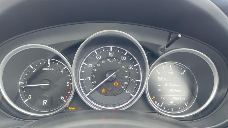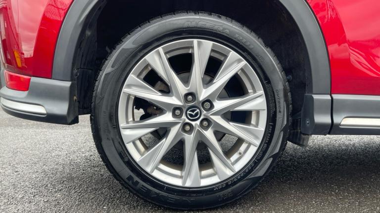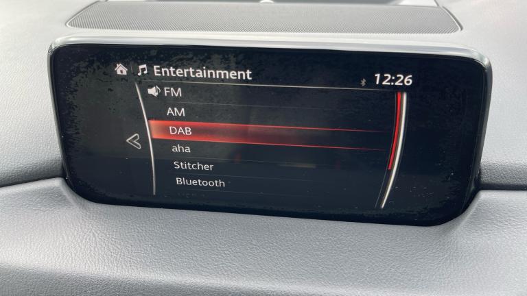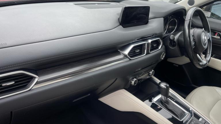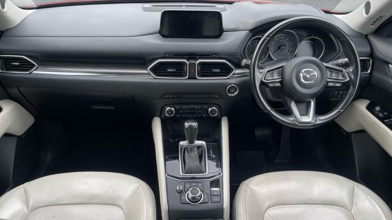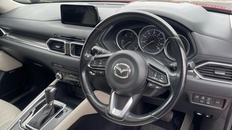 Superb family SUV which is loaded with great features and spacious interior and boot! Reserve online today or call us to request a personalised video!. The Sport Nav Plus trim offers a great level of standard equipment as expected. Included on this car you will find Front and Rear Parking Sensors with a Colour Rear Camera, Cruise Control with Speed Limiter Assist, Keyless Entry and Go, Lane Departure Warning with Traffic Sign Recognition, a Tilt and Slide Opening Sunroof and even Smart City Brake Support. A Powered Tailgate provides easy access to the cargo area and once inside provides a capacity of 506 litres of luggage space. This can be expanded when the rear seats are lowered to accommodate larger loads. Black Leather upholstery decorates the cabin of the CX-5 nicely and includes Heated Front Seats, Electrically Adjustable Front Seats and even a Heated Steering Wheel as standard. In the rear of the car Isofix Points are provided and offer a secure method of fastening children into the vehicle. The central media system provides great connectivity options with Bluetooth and USB being the most noticeable. In addition to this, Navigation is also provided with DAB radio bands too. This is all connected to the Premium BOSE Sound System for a great acoustic experience.