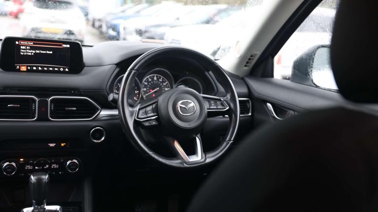 .Meet the Mazda CX-5 2.2d SE-L Nav AWD Auto the SUV that blends performance, practicality and premium feel into one seriously capable package. Power Meets Precision Under the bonnet sits a refined 2.2-litre diesel engine paired with smooth automatic transmission and intelligent AWD. The result? Effortless motorway cruising, confident grip in all conditions, and the kind of drive that makes every journey feel composed and controlled. Design with Purpose Mazdas flowing KODO design gives the CX-5 a strong, athletic stance. Clean lines. Bold front grille. A look thats as sharp pulling up at the office as it is heading out of town. Smart Technology, Seamless Driving The SE-L Nav trim keeps you connected and in command: Integrated satellite navigation Clear infotainment display Rear parking sensors Dual-zone climate control Everything you need, exactly where you expect it. Space to Live Five doors. Generous boot space. Comfortable seating for family, friends and everything that comes with them. Whether its the weekly shop or a weekend away, the CX-5 handles it with ease. Efficiency Without Compromise Strong diesel economy meets solid SUV performance giving you long-distance capability without constant fuel stops. The 2018 Mazda CX-5 2.2d SE-L Nav AWD Auto isnt just built to get you there. Its built to make you enjoy the drive. Solid. Sophisticated. Ready for whatevers next..7'' touchscreen with multimedia commander and Aha and Stitcher app, Bluetooth connectivity with voice control, Cruise control, Emergency stop signalling system, Engine start/stop button, Front and rear parking sensors, Integrated navigation system, PAS, Speed limiter, Trip computer, i-stop, 6 speakers, DAB Digital radio, Radio/CD, Steering wheel mounted audio controls, USB/iPod/auxiliary input connections, Adaptive front lighting system, Auto dimming rear view mirror, Automatic headlights with dusk sensor, Body colour roof spoiler, Body coloured bumpers, Coming/leaving home lighting function, Dual exhaust pipes, Electric adjustable/heated/folding door mirrors, Electric front/rear windows/one touch facility, Intermittent rear wash/wipe, LED daytime running lights, LED front fog lights, LED Headlights, Privacy glass, Rain sensing front wipers, Shark fin roof aerial, 2 cupholders, 3 grab handles with rear coat hook, 40:20:40 split folding rear bench seat, Cloth upholstery, Driver seat lumbar adjustment, Driver/passenger front seatback pockets, Driver/passenger sunvisors +