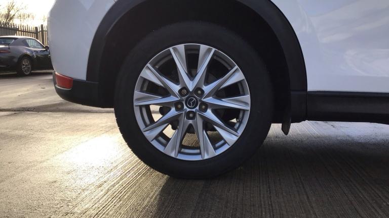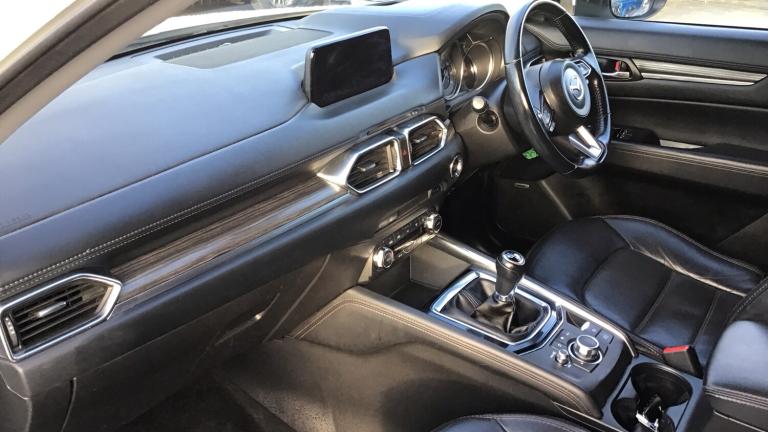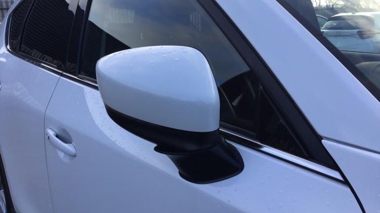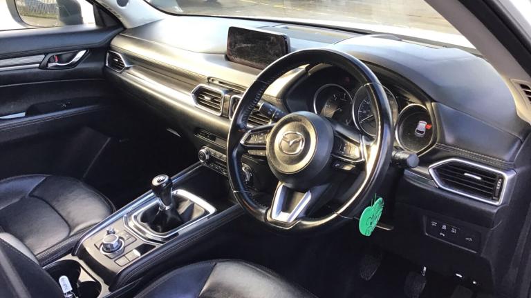 Our spacious SUV is a car that the whole family can enjoy!. We have a beautiful Arctic White Mazda CX-5 fitted with Black Leather Upholstery and 19inch Silver Alloy Wheels. If you are looking for a SUV with great spec then be impressed with this one as it comes with features including Reversing camera, Speed limiter, Traffic sign recognition, Advanced blind spot monitor with rear cross traffic alert, Collision prevention assist, Cruise control, Forward collision warning, Front and rear parking sensors, Lane departure warning system, Lane keep assist, Bluetooth connectivity with voice control, Advanced Smart City Brake Support, 7inch touchscreen with multimedia commander and Aha and Stitcher app, Colour head up display, Integrated navigation system, Engine start/stop button, Power tailgate, Bluetooth audio streaming, Bose premium sound system with 10 speakers, DAB Digital radio, Adaptive front lighting system, Dual zone climate control, Heated steering wheel, Leather upholstery, 8 way electric driver seat with lumbar support and memory, Heated front seats, Smart keyless entry, ISOFIX child seat anchorage points attached on outer rear seats and more!.