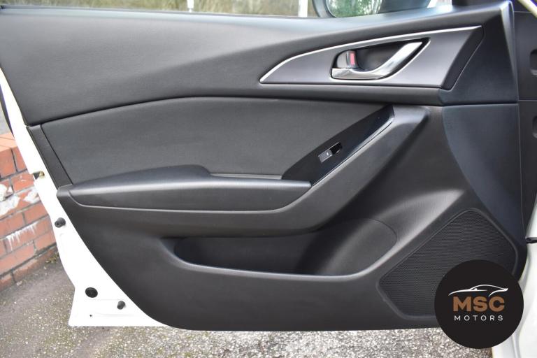 This Mazda 3 is in lovely condition for its age and mileage, it’s got a full service history and it’s a brilliant specification. It’s got front and rear parking sensors along with the reverse camera to help getting into those tight supermarket spaces and once you are parked you needn’t worry about people catching your wing mirrors as they will fold in electronically. The automatic headlights and windscreen wipers are two lovely features and you needn’t ever take your eyes off the road ahead to check your speed with the heads up display. You’ll never get lost again with the built in Sat-Nav and you can listen to music anyway that you please with the DAB radio, Bluetooth for both audio and calls and USB connectivity. In the freezing winter months the heated seats will keep you nice and warm and in the summer months the air-con will keep you nice and cool. We find these 2.0L petrol Mazda 3’s to be great sellers due to their reliability and the fact that they’re great on fuel but also have plenty of power when you need them. The gentleman that we purchased this from always took it back to Mazda for its servicing and we’ve also just serviced it. It has both of its original keys with it and all of our retail cars come with a warranty which you can extend if you wish to. Part exchanges are welcome and low rate finance with no deposit options are available. If you have any questions at all then please don’t hesitate to contact us.