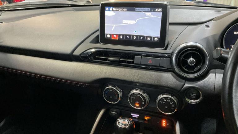 A very well-specified and highly sought-after MX-5 RF Sport, finished in Jet Black and paired with the factory black leather interior with red contrast stitching. This example has covered 53,136 warranted miles and has been maintained exclusively by Mazda main dealers, with 4 recorded services, the most recent carried out at 44,682. Supplied with 2 keys and a long MOT valid until August 2026. Powered by the superb 2.0 SKYACTIV-G 160bhp engine, this RF delivers the performance and character enthusiasts look for, combined with the refinement and security of the power retractable fastback roof, giving the best of both coupe and convertible driving. Key specification highlights include: ? Power retractable hardtop (RF) ? Satellite navigation ? Heated front seats ? Black leather upholstery with red stitching ? Adaptive LED headlights with auto levelling ? Lane departure warning ? Rear parking sensors ? Climate control air conditioning ? Smart keyless entry & start ? Cruise control with adjustable speed limiter ? 17'' alloy wheels ? Multimedia system with rotary controller ? Bluetooth audio & USB connectivity ? Auto-dimming rear view mirror ? Rain-sensing wipers ? Thatcham Category 1 alarm & immobiliser …and much much more. A cracking example of the MX-5 RF Sport — engaging to drive, well equipped, and sensibly maintained, with the desirable combination of 2.0 engine, RF roof, and Sport specification. Each car we sell is carefully selected and rigorously inspected for your peace of mind. All our vehicles undergo a thorough safety check, which includes an extensive road test, and all are sold with a minimum of 6 months' MOT. If a service is due, we'll take care of it before you drive away, ensuring your next car's maintenance schedule is up to date and you are ready for the road. In addition to this, every car is backed by our own 3-month guarantee, plus the option to extend it up to 36 months. Please ask your sales advisor for a personalised quote.