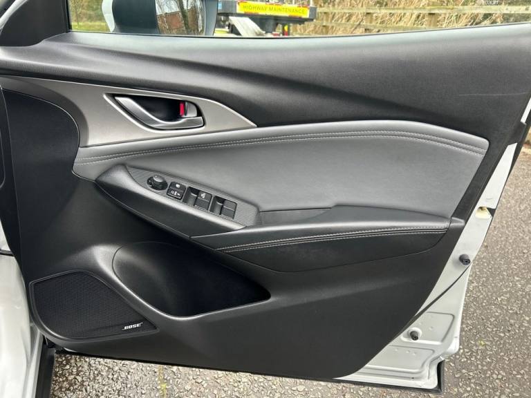 .18in Alloy Wheels - Silver, 7in Colour Touch Screen Display, ABS - Anti Lock Braking System, AM-FM DAB Radio - Single CD-MP3 Premium Bose Sound System with 7 Speakers, AUX and 2 USB Inputs, Advanced Smart City Brake Support, Aha App and Stitcher App Integration, Air Conditioning - Automatic Climate Control, Airbags - Front Passenger Deactivation System, Audio Transfer from Bluetooth Devices, Auto Dimming Rear View Mirror, Centre Armrest - 2x Cup Holders, Colour Active Driving Display - Colour Head-Up Display, Courtesy Light with Integral Spotlights, Cruise Control with Manual Speed Adjustment, Door Mirrors - Electrically Adjustable - Heated - Auto Power Folding with Integrated Indicator Lights, Door Pockets - Driver - Front Passenger and Rear, Dual Exhaust System, Dual Front Airbags, Dusk Sensing Automatic Headlights, Dynamic Stability Control with Traction Control System, EBA - Emergency Brake Assist, Electric Windows - Front and Rear with One Touch Auto Up and Down on Drivers Side, Electronic Parking Brake with Auto-Disengage Function, Emergency Stop Signalling System - ESS, Emergency Tyre Repair Kit, Engine Start-Stop Button, Front Bumper Trim - Chrome Accent, Front Fog Lights - LED, Front Knee Pad - Black Soft-Touch with Stitching, Front Parking Sensors, Front Side Airbags, Front and Rear Curtain Airbags, G-Vectoring, Gear Knob - Leather-Wrapped with Satin Silver Surround, Gear Shift Indicator, Glovebox, Grab Handles - Front Passenger and Two Rear with Coat Hooks, Headlights - Adaptive Front Lighting System, Headlights - Coming-Leaving Home, Headlights - LED with LED Daytime Running Lights and Auto Headlight Levelling, Hill Hold Assist, ISOFIX Child Seat Anchorage for Outer Rear Seats, Inner Door Handle Surround - Front and Rear - Chrome, Integrated Bluetooth System, LED Signature Rear Lights, Lane Departure Warning System, Luggage Compartment - Flexible Floorboard for Adjustable Floor Height or Secure Separate Storage Space, Luggage Compartment - Light, Luggage Compartment - Tonneau Cover, Mazda Navigation System - European Mapping with Alternative Route Calculations - Point of Interest Search and 3-Years Free Map Updates, Multimedia Commander, Power Assisted Steering - Electronic, Privacy Glass - Rear and Rear Side Windows, Rain-Sensing Front Wipers, Rear Parking Sensors, Remote Central Locking with Deadlocking, Reversing Camera, Seatback Pocket - Rear of Front Passenger Seat, Seatbelt Reminder Audible Warning, Seatbelts - Front 3-Point -ELR - x2 wit