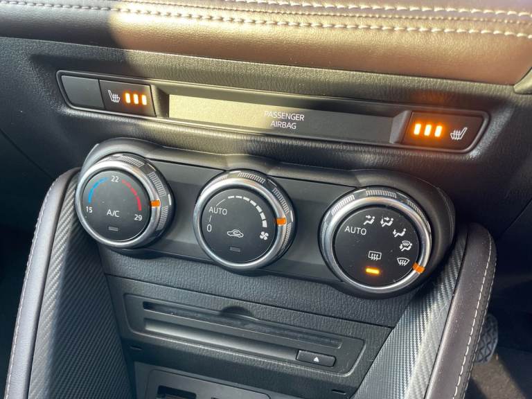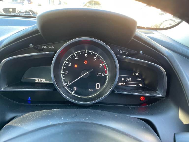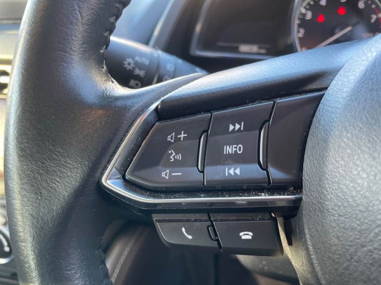 ..Driver Convenience,Analogue Speedometer,Colour Active Driving Display - Colour Head-Up Display,Cruise Control with Adjustable Speed Limiter,Gear Shift Indicator,i-Stop Status,Lane Departure Warning System,Multimedia Commander,Rear Parking Sensors,Reversing Camera,Trip Computer,Tyre Pressure Monitoring SystemEntertainment,7in Colour Touch Screen Display,AM-FM-DAB Radio - Single CD Player-MP3 Audio System with 6 Speakers,AUX and 2 USB Inputs,Integrated Bluetooth System,MZD-Connect,Satellite Navigation System,Shark Fin AntennaExterior,16in Alloy Wheels - Silver,Brilliant Black Rear Spoiler,Chrome Exhaust Trim,Door Mirrors - Electrically Adjustable - Heated - Power Folding with Integrated Indicator Lights,Electric Windows - Front and Rear with One Touch Auto Up and Down on Drivers Side,Front Grille Insert - Dark Grey Metallic,Privacy Glass - Rear and Rear Side Windows,Tyre Repair KitInterior,Air Conditioning - Climate Control,Courtesy Light with Integrated Spotlight,Dashboard Panel - Black - Soft-Touch with White Stitching,Door Pockets - Driver and Front Passenger,Engine Start-Stop Button,Front Passenger Seat - Manual Height Adjustment,Front Passengers Seat - Manual Slide and Recline Adjustment,Gear Knob - Leather,Glovebox,Grab Handles - Front Passenger and Two Rear with Coat Hooks,Handbrake - Leather Wrapped,Luggage Compartment - Light,Rain-Sensing Front Wipers,Seatback Pocket - Front Passenger,Seats - 60-40 Split Folding Rear,Seats - Drivers Manual Slide-Recline and Height Adjustment,Seats - Front Heated,Steering Wheel - Leather,Steering Wheel - Mounted Remote Audio Controls,Steering Wheel - Telescopic and Tilt Adjust,Sunvisors - Drivers and Front Passengers with Covered Vanity Mirror and Drivers Ticket Holder,Three Height Adjustable Rear Head RestraintsEntertainment,7in Colour Touch Screen Display,AM-FM-DAB Radio - Single CD Player-MP3 Audio System with 6 Speakers,AUX and 2 USB Inputs,Integrated Bluetooth System,MZD-Connect,Satellite Navigation System,Shark Fin Antenna