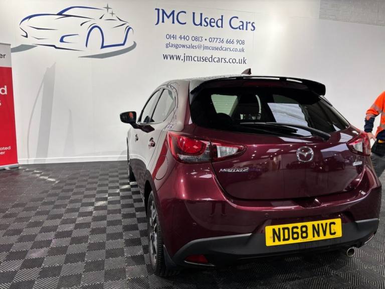 The Mazda?2 1.5 SKYACTIV?G Sport Nav+ is a brilliant little hatchback that punches well above its weight. Its 1.5?litre SKYACTIV?G petrol engine delivers a lively yet efficient drive, with strong fuel economy and low CO? emissions thanks to its Euro 6 compliance. With a 0-62?mph time of around 9.4 seconds (depending on spec) its nimble and responsive, making it ideal for city driving and tight manoeuvres. The Sport Nav+ trim adds real value, offering modern conveniences like navigation, smart keyless entry, and a well-appointed cabin. Plus, Mazdas commitment to efficiency with its high-compression engine and i?stop technology means running costs and emissions stay impressively low. Overall, its a practical, fun, and economical choice in the B?segment — great for both daily driving and longer journeys. Award-Winning Family Business Premium Customer Service & Aftercare Located just off Junction 24 of the M8 in Glasgow, we offer an impressive range of quality used cars, all displayed in our indoor showroom. Each vehicle is meticulously prepared to meet our high standards, ensuring youre driving away with complete confidence. We welcome part exchanges and offer tailored finance and warranty packages to suit every budget. Need help choosing the right car? Our team is here to provide expert advice and support. Cant make it in person? No problem! We offer live video walkarounds of our cars upon request, and you can complete all finance agreements securely online. For more details or to arrange a viewing, contact Martin today. JMC USED CARS WWW.JMCUSEDCARS.CO.UK [Email address removed. Click Email button to contact us.] YEAR MOT, DAB RADIO, BLUETOOTH, PARKING SENSORS, FINANCE AVAILABLE, 16in Alloy Wheels - Gunmetal, 7in Colour Touch Screen Display, ABS - Anti Lock Braking System, AM-FM-DAB Radio - Single CD Player-MP3 Audio System with 6 Speakers, AUX and 2 USB Inputs, Air Conditioning - Climate Control, Analogue Speedometer, Brilliant Black Rear Spoiler, Chrome Exhaust Trim, Courtesy Light with Integrated Spotlight, Cruise Control with Adjustable Speed Limiter, Dashboard Panel - Black - Soft-Touch with White Stitching, Door Mirrors - Electrically Adjustable - Heated - Power Folding with Integrated Indicator Lights, Door Pockets - Driver and Front Passenger, Dual Front Airbags, Dusk Sensing Automatic Headlights, Dynamic Stability Control - DSC - with Traction Control System - TCS, Electric Windows - Front and Rear with One Touch Auto Up and Down on Drivers Side, Electronic Power Assisted Steering, Emergency Stop Signalling System - ESS, Engine Start-Stop Button, Front Fog Lights - LED, Front Grille Insert - Dark Grey Metallic, Front Passenger Airbag Cut-Off Switch, Front Passenger Seat - Manual Height Adjustment, Front Passengers Seat - Manual Slide and Recline Adjustment, Front Side Airbags, Front and Rear Curtain Airbags, G-Vectoring, Gear Knob - Leather, Gear Shift Indicator, Glovebox, Grab Handles - Front Passenger and Two Rear with Coat Hooks, Halogen Daytime Running Lights, Handbrake - Leather Wrapped, Headlights - Coming-Leaving Home, Headlights - Halogen with Manual Headlight Levelling, Hill Hold Assist, ISOFIX Child Seat Anchorage - Attached to Outer Rear Seats, Integrated Bluetooth System, Lane Departure Warning System, Luggage Compartment - Light, MZD-Connect, Multimedia Commander, Privacy Glass - Rear and Rear Side Windows, Rain-Sensing Front Wipers, Rear Parking Sensors, SRS - Supplementary Restraint System, Satellite Navigation System, Seatback Pocket - Front Passenger, Seatbelt - Reminder Screen - Driver - Passenger and Rear Seats with Audible Warning, Seatbelts - Front - 3 Point - ELR x 2 with Pre-Tensioners, Seatbelts - Rear - 3-point - ELR x 2 with Pre-tensioners, Seats - 60-40 Split Folding Rear, Seats - Drivers Manual Slide-Recline and Height Adjustment, Self-Supporting Rigid and Torsion-Resistant All-Steel Body with Defined Crush Zones for the Front and Rear Sections - Stable Passenger Safety Cell with Side Impact Reinforcement in the Doors, Shark Fin Antenna, Smart City Brake Support, Smart Keyless Entry, Steering Wheel - Leather, Steering Wheel -