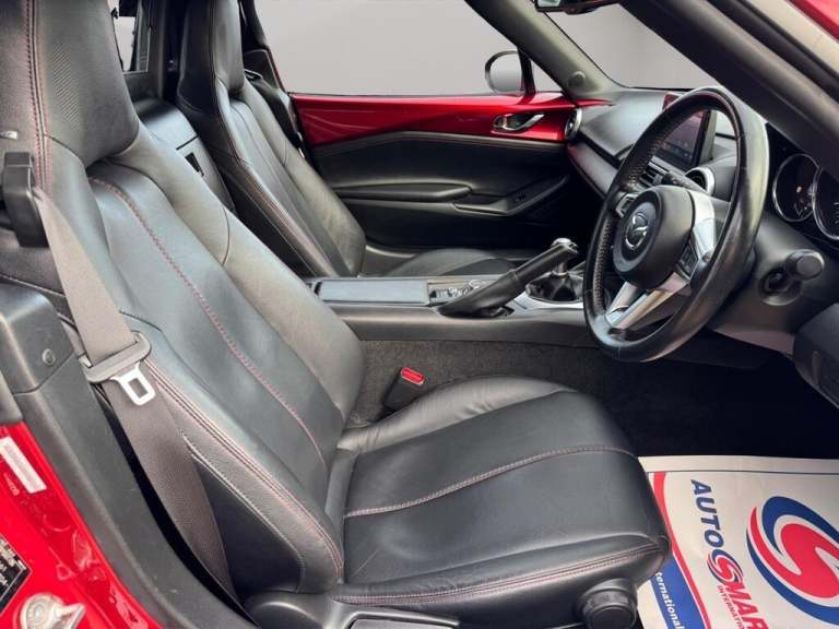 LAST SERVICED AT 32K MILES - MOT UNTIL OCTOBER 2026 WITH NO ADVISORIES - ELECTRIC HARDTOP, HEATED LEATHER SEATS, CRUISE CONTROL, LANE SPERATURE, REAR PARKING SENSORS, BLUETOOTH, DAB RADIO, USB PORT, AIR CON, AUTO LIGHTS/WIPERS, DAYTIME LEDS, ALLOYS AND MORE! - LAST SERVICED AT 32K MILES - MOT UNTIL OCTOBER 2026 WITH NO ADVISORIES - FREE 3 MONTHS AUTOGUARD WARRANTY INCLUDED - CAT S REPAIREDThis 2019 Mazda MX-5 RF SKYACTIV-G Sport Nav+ offers excellent peace of mind with its MOT valid until October 2026 and a 3 month warranty. With a last service at 32,000 miles and being a Euro 6 compliant model, this 1.5 litre petrol convertible is ready for its next adventure. Enjoy the convenience of Smart Keyless Entry, dual zone Climate Control, and Dusk Sensing Automatic Headlights. The LED headlights with auto levelling ensure optimal visibility, while the Multimedia System, complete with a Premium Branded Sound System, enhances every journey.This Mazda MX-5 RF stands out with its impressive fuel economy, achieving up to 45 miles per gallon, which indicates it is more economical than many similar vehicles. Furthermore, its low CO2 emissions highlight its environmental consideration. This Sport Nav+ model combines engaging driving dynamics with practical features, making it a compelling choice for those seeking a stylish and enjoyable driving experience.
