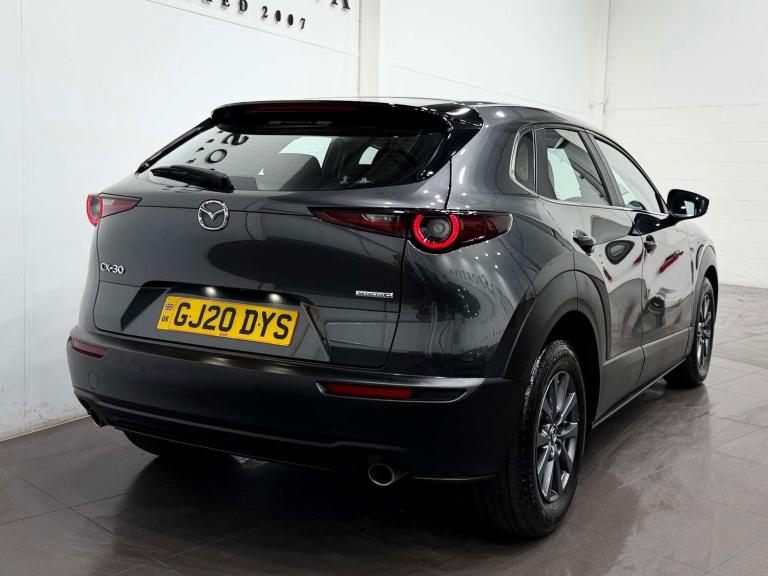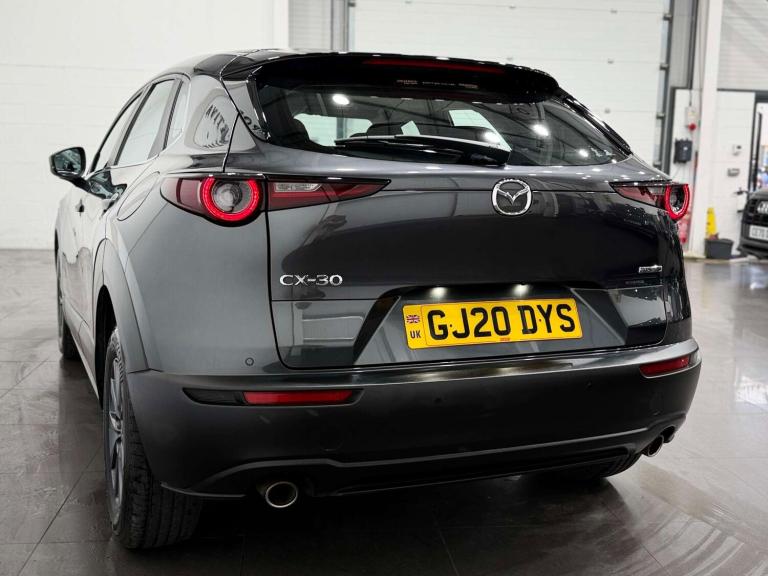 Introducing the stunning Mazda CX-30 2.0 SE-L Luxury MHEV 5in sleek Grey finish. With only 46,000 miles on the clock and 2 previous owners, this car is a true gem.This Mazda CX-30 comes with some fantastic extras, including 16in Alloy Wheels in Grey Metallic, Premium Cloth interior in Dark Grey with Navy Blue Interior Accent, Heated Front Seats with 3-Stage Settings for ultimate comfort, a Reversing Camera for easy manoeuvring, Integrated Bluetooth System for seamless connectivity, Apple CarPlay for all your entertainment needs, and a stylish Machine Grey exterior.Don't miss out on the opportunity to own this luxurious and feature packed Mazda CX-30.Finance from 8.9% APR Representative and Nationwide Delivery available. All of our vehicles are Supplied with a minimum 1/4 a tank of fuel, a 7 Day Money Back Guarantee*, a Full Multi-Point Mechanical inspection, a 6 Month Warranty, a Professional Valet and all vehicles come HPI clear so you can Buy with Confidence. *PLEASE UNDERSTAND every effort has been made to ensure the accuracy of the information above, however, errors may occur. Please do not rely entirely on this information and check with your sales executive about items that may affect your decision to purchase. *Our 7 day money back guarantee is available on selected retail vehicles, please confirm with your sales advisor. *A £299 Admin fee applies to third party external finance companies being used. All vehicle video tours are available upon request. Appointment basis only.Â