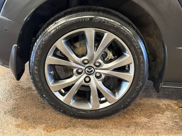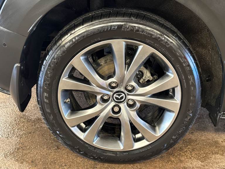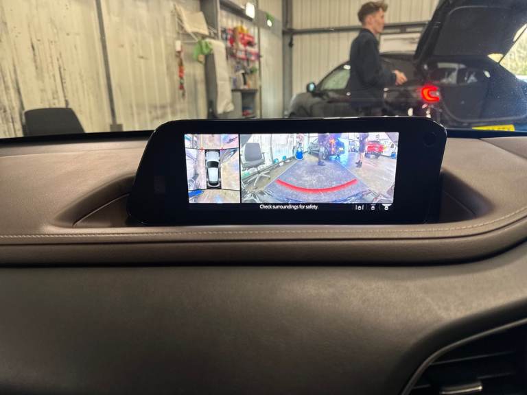 ..360 View Monitor, 7'' TFT Colour driver instrument panel display, 8.8'' Colour centre touch screen display with Mazda Connect infotainment, Adaptive cruise control (Mazda radar cruise control) features stop and go, Apple car play/Android Auto, Blind spot monitoring with rear cross traffic alert, Cruising Traffic Support, Driver attention alert system, Driver monitoring system, E-call with GPS, Emergency stop signalling system, Engine start/stop button, Front and rear parking sensors, Front Cross Traffic Alert, Integrated bluetooth, Integrated Mazda navigation system, Intelligent speed assist, Lane keep assist system (LAS) with Lane departure warning system (LDWS), PAS, Power lift gate, Service indicator, Trip computer, Window projected colour active driving display (head up display) with traffic sign recognition, i-stop, 2 USB charging ports, Bose surround sound system with 12 Speaker, Bose center point, Bass match and audio pilot technology, CD player, DAB Digital radio, Multimedia Commander including separate volume dial, Steering wheel mounted audio/bluetooth controls, Adaptive LED Headlights, Auto dimming driver's door mirror, B-pillar and C-pillar garnishes in gloss black finish, Body coloured, electrically adjustable, heated auto power folding door mirrors with integrated indicators, Coming/leaving home lighting function, Door mirrors with tilt-down function when reversing, Dual chrome exhaust, Dusk sensing headlights, Electric front/rear windows with one touch auto up/down, Frameless auto dimming interior rear view mirror, Front kodo turn signal, Gloss black front grille, Gloss black rear roof spoiler, High beam assist, LED headlamps with auto levelling, Power tilt/slide sunroof, Privacy glass (rear side windows and rear screen), Rain sensing front wipers with adjustable speed and intermittent wipe, Rear fog lights, Rear wiper, Signature front LED daytime running lights, Signature LED rear combination lights with LED rear turn lights, 12V power outlet in centre console, 60/40 split fold down rear seats, Chrome horn pad ring, Dashboard, door cards and front centre armrest in rich brown leather, Driver and front passenger visors with covered vanity mirror and driver ticket holder, Driver seat memory function, Driver's seat, power tilt, slide, recline, height and lumbar adjustment, Driver, Front passenger and two rear grab handles with coathooks, Dual zone climate control air conditioning with rear air vents, Folding rear centre armrest with two cup