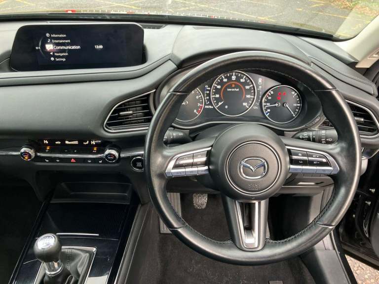 Mazdas CX-30 is the crossover that proves you dont have to compromise between style, efficiency, and driving pleasure. This 2021 Sport Lux model, with just 35,673 miles, showcases Mazdas innovative e-SKYACTIV X mild hybrid technologydelivering petrol performance with diesel-like efficiency and lower emissions.Under the bonnet, the 2.0-litre engine offers smooth, responsive power, while the mild hybrid system assists acceleration and optimises fuel economy. The result? A car that feels lively yet frugal, perfect for both city streets and long motorway runs.Inside, the CX-30 Sport Lux is all about refinement. Premium materials, ergonomic seating, and a driver-focused layout create a cabin that feels genuinely upmarket. The 8.8-inch infotainment display with Apple CarPlay and Android Auto keeps you connected, while the Bose sound system turns every drive into a concert. Heated seats and dual-zone climate control ensure comfort whatever the weather.Safety is uncompromised. Mazdas i-Activsense suite includes Adaptive Cruise Control, Lane Keep Assist, Blind Spot Monitoring, and Smart Brake Supportgiving you confidence on every journey. Add front and rear parking sensors with a reversing camera, and even tight manoeuvres become stress-free.Buying from FG Barnes means peace of mind. Every car is backed by a comprehensive warranty and inspected by manufacturer-trained technicians, ensuring your Mazda is in peak condition. Plus, our dedicated aftersales team is here to keep you motoring with confidence.This CX-30 isnt just practicalits stylish, safe, and packed with tech to make every drive a pleasure. Dont miss out.