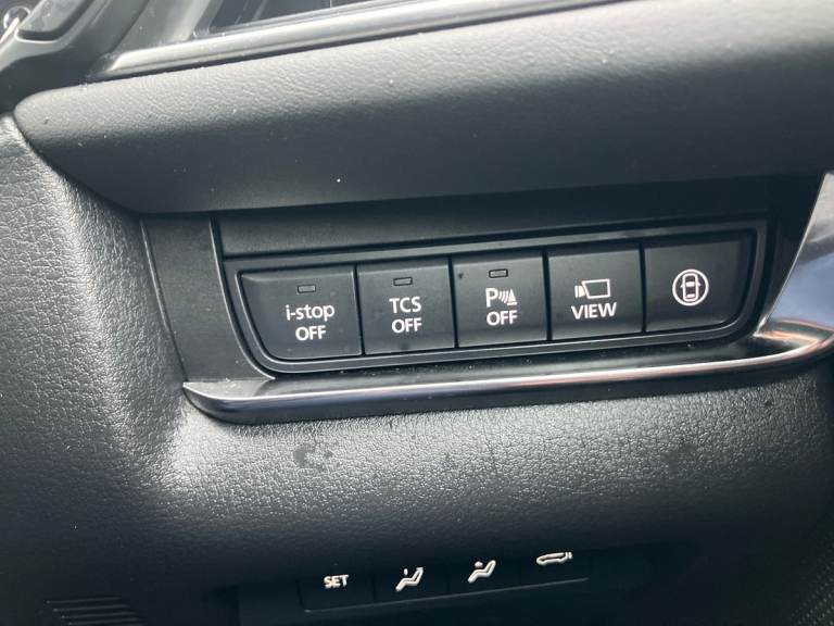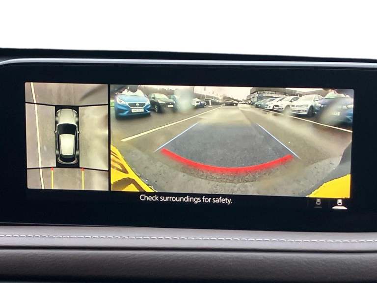 ..360 View Monitor, 7'' TFT Colour driver instrument panel display, 8.8'' Colour centre touch screen display with Mazda Connect infotainment, Adaptive cruise control (Mazda radar cruise control) features stop and go, Apple car play/Android Auto, Blind spot monitoring with rear cross traffic alert, Cruising Traffic Support, Driver attention alert system, Driver monitoring system, E-call with GPS, Emergency stop signalling system, Engine start/stop button, Front and rear parking sensors, Front Cross Traffic Alert, Integrated bluetooth, Integrated Mazda navigation system, Intelligent speed assist, Lane keep assist system (LAS) with Lane departure warning system (LDWS), PAS, Power lift gate, Service indicator, Trip computer, Window projected colour active driving display (head up display) with traffic sign recognition, i-stop, 2 USB charging ports, Bose surround sound system with 12 Speaker, Bose center point, Bass match and audio pilot technology, CD player, DAB Digital radio, Multimedia Commander including separate volume dial, Steering wheel mounted audio/bluetooth controls, Adaptive LED Headlights, Auto dimming driver's door mirror, B-pillar and C-pillar garnishes in gloss black finish, Body coloured, electrically adjustable, heated auto power folding door mirrors with integrated indicators, Coming/leaving home lighting function, Door mirrors with tilt-down function when reversing, Dual chrome exhaust, Dusk sensing headlights, Electric front/rear windows with one touch auto up/down, Frameless auto dimming interior rear view mirror, Front kodo turn signal, Gloss black front grille, Gloss black rear roof spoiler, High beam assist, LED headlamps with auto levelling, Power tilt/slide sunroof, Privacy glass (rear side windows and rear screen), Rain sensing front wipers with adjustable speed and intermittent wipe, Rear fog lights, Rear wiper, Signature front LED daytime running lights, Signature LED rear combination lights with LED rear turn lights, 12V power outlet in centre console, 60/40 split fold down rear seats, Chrome horn pad ring, Dashboard, door cards and front centre armrest in rich brown leather, Driver and front passenger visors with covered vanity mirror and driver ticket holder, Driver seat memory function, Driver's seat, power tilt, slide, recline, height and lumbar adjustment, Driver, Front passenger and two rear grab handles with coathooks, Dual zone climate control air conditioning with rear air vents, Folding rear centre armrest with two cup