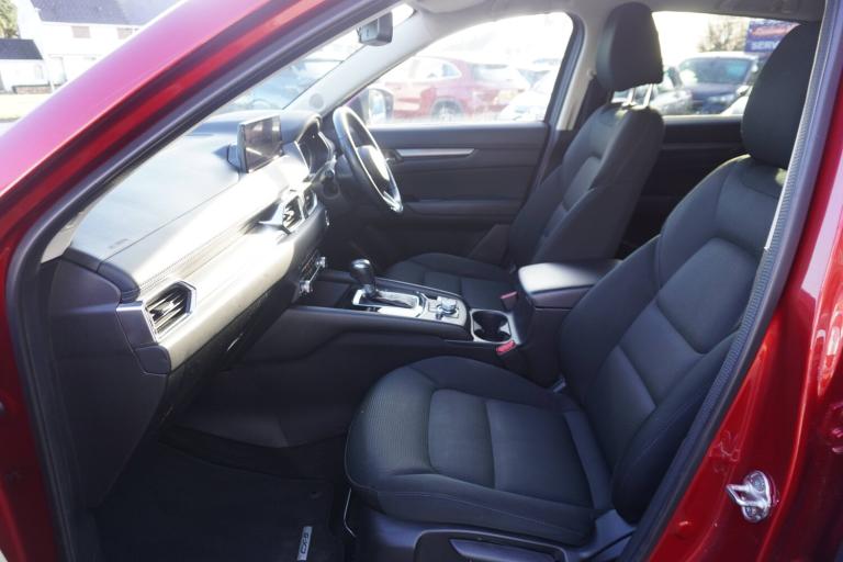 3 point front seatbelts with pre-tensioners, 3 rear 3 point seatbelts, ABS, Advanced Smart City Brake Support - SCBS, DSTC-Dynamic Stability and Traction Control, Dual front airbags, Electronic brake force distribution, Electronic parking brake with auto hold, Front and rear curtain airbags, Front passenger airbag deactivation, Front side airbags, G-Vectoring control, Hill hold assist, Seatbelt reminder front and rear, Smart brake support with forward obstruction warning, Tyre pressure monitoring system, 10.25 inch display with Mazda Connect infotainment, Apple car play/Android Auto, Blind spot monitoring with rear cross traffic alert, Bluetooth connectivity with voice control, Collision prevention assist, Connected services, Electric power steering, Emergency stop signalling system, Engine start/stop button, Forward collision warning, Front and rear parking sensors, Integrated navigation system, Intelligent speed assist, Lane departure warning system, Lane keep assist, Radar cruise control with Stop and Go, Service indicator, TFT display screen, Trip computer, Adaptive front lighting system, Auto dimming rear view mirror, Body colour door mirrors, Body colour roof spoiler, Body coloured front bumper with black lower mouldings, Body coloured rear bumper with black lower mouldings, Coming/leaving home lighting function, Door mirror integrated indicators, Dusk sensitive headlamps, Electric adjustable/heated/folding door mirrors, Electric front/rear windows/one touch facility, Exhaust pipe, High beam assist, Intermittent rear wash/wipe, LED daytime running lights, LED front fog lights, LED Headlights, LED third brake light, Privacy glass, Rain sensing front wipers, Scuff plates, Shark fin roof aerial, Signature LED rear combination lights, Solid paint, 2 cupholders, 3 grab handles with rear coat hook, Driver seat lumbar adjustment, Driver/passenger front seatback pockets, Driver/passenger sunvisors + illuminated vanity mirrors (drivers with ticket holder), Dual zone climate control, Front and rear door pockets, Front centre armrest, Front centre console storage box, Height adjustable drivers seat, Height adjustable head restraints, Height adjustable passenger seat, Humidity sensor, Illuminated glovebox, Interior dome light with integral spotlight, Interior incandescent lighting, ISOFIX child seat anchorage points attached on outer rear seats, Karakuri tonneau cover, Leather steering wheel/gearknob/handbrake grip, Light roof lining, Luggage compartment