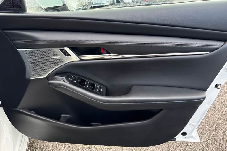 Available now at Motor Match Chester is this Mazda3 2.0 e-SKYACTIV-X MHEV GT Sport Tech, which comes in the stunning Arctic White metallic paintwork from 3 previous owners, and sits on stunning 18"" alloy wheels for a fantastic look! This vehicle was last serviced at 36,167 miles. The vehicles LED headlights and daytime running lights ensure youre seen at all hours of the day, and the front and rear parking sensors, alongside the 360 view camera are perfect for alerting you of any obstructions when manoeuvring. The boot provides a great amount of storage space, with the option of folding the rear seats for any larger items, and the interior is finished in a full leather upholstery for a stylish feel. Youll find Isofix mounting points on both outer rear seats, and the front seats can be heated to provide excellent comfort during the winter months! The multifunctional steering wheel has mounted controls for audio and telephone functions, as well as the cruise control and speed limiter, which is perfect for motorway driving. In terms of entertainment, you have the choice of the DAB, AM and FM radio, or you can connect devices via Bluetooth to listen to your own music. You can use the Bluetooth function to connect your mobile device to make and take phone calls whilst out on the go and the satellite navigation allows you to plan routes and locate nearby points of interest for a smoother journey! This vehicle is compliant with Clean Air Zone (CAZ) or Ultra Low Emission Zo...