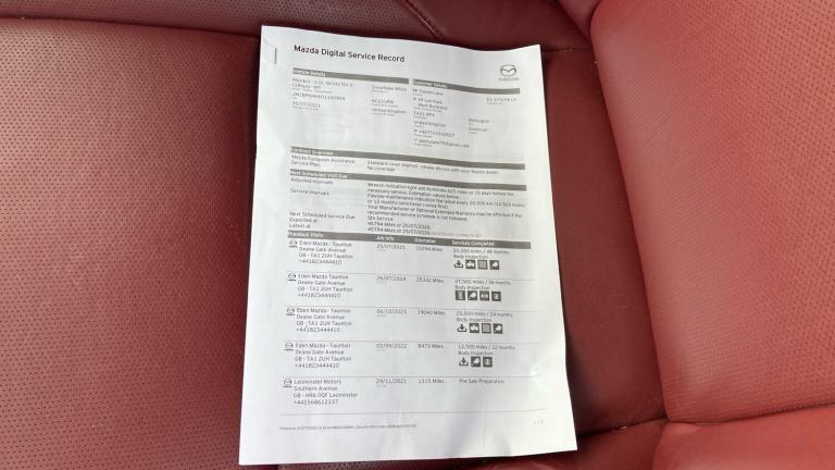 Sporty, stylish and exceptionally well equipped, this Mazda 3 GT Sport delivers the perfect blend of driving fun, efficiency and refinement. Powered by Mazda's innovative Skyactiv-X mild-hybrid petrol engine, it offers diesel-like torque, strong performance and impressive fuel economy.With 35,744 miles from new, this example is in great condition and represents superb value for money. Key Features 2.0 Skyactiv-X petrol engine with MHEV technology Premium GT Sport specification Advanced safety & driver assistance systems Head-up display Adaptive LED headlights Heated front seats & heated steering wheel Leather upholstery with premium finish BOSE® premium sound system Digital instrument display Apple CarPlay & Android Auto Satellite navigation Front & rear parking sensors + reversing camera Smart alloy wheels & sporty styling Driving ExperienceThe Mazda 3 is well-known for its engaging handling, quiet cabin and high-quality materials, making it feel more premium than many rivals. The Skyactiv-X engine delivers smooth, responsive performance with the added benefit of hybrid efficiency. Why Buy This Mazda 3?This is a high-spec, great-looking hatchback with a generous equipment list and an outstanding reputation for reliability, safety and build quality. With reasonable mileage, full GT Sport features and strong economy, it's a superb choice for anyone seeking a stylish, modern alternative to the usual premium brands. Ready to drive away finance, part-exchange and home delivery available..Electric front/rear windows with one touch/auto up/down, DSC - Dynamic Stability Control, Integrated bluetooth with steering wheel mounted controls, PAS, Engine start/stop button, Trip computer, Auto dimming door mirrors, Mazda Multimedia System with AM / FM / DAB radio, single CD / MP3 with 12 Speaker Bose sound system, bose centerpoint, bassmatch+audiopilot technology, Gloss black mesh grille, Daytime running lights, Dual zone climate control air conditioning, Illuminated glovebox, Luggage compartment light, Front side airbags, Three height adjustable rear head restraints, Remote central locking + deadlocks, Driver/passenger sunvisors + vanity mirrors (drivers side with ticket holder), 18"" Grey metallic alloy wheels, Emergency tyre repair kit