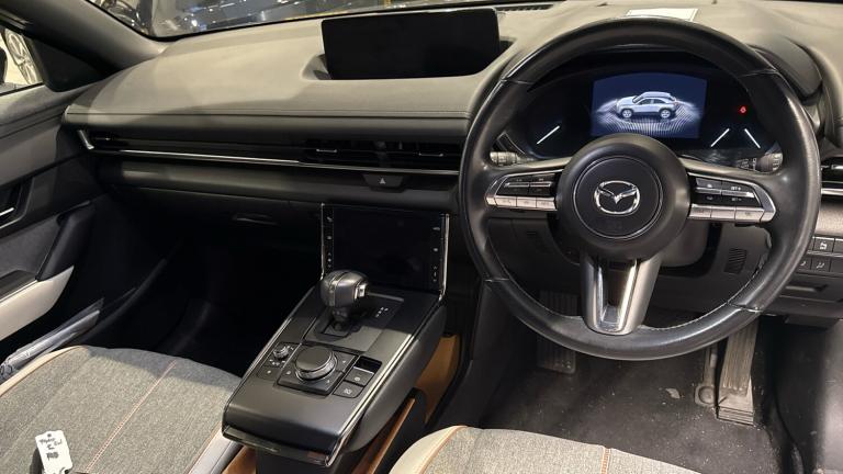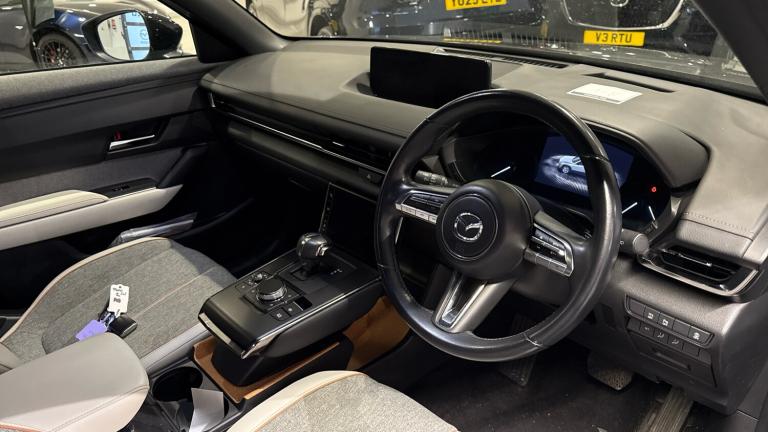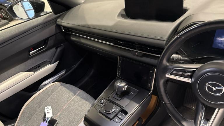 A Mazda MX&8209,30 Electric Hatchback 107kW Sport Lux 35.5kWh 5dr Auto brings together style, innovation and everyday practicality in a way that makes it a genuinely appealing choice for families who want something modern, efficient and thoughtfully designed. This model stands out with its distinctive coupe&8209,inspired shape, rear&8209,hinged freestyle doors and a cabin that feels warm, contemporary and crafted with sustainable materials, creating an inviting space that suits school runs, commutes and weekend trips alike. The Sport Lux trim adds a generous list of well&8209,chosen equipment, including advanced driver&8209,assistance systems, premium interior finishes, intuitive infotainment and comfort&8209,focused features that make every journey feel calm and effortless. Its 107kW electric motor delivers smooth, quiet and responsive performance, ideal for city driving and relaxed motorway cruising, while the 35.5kWh battery supports the kind of daily mileage most families actually need without the noise, vibration or running costs of a traditional engine. One of the biggest advantages of choosing an electric vehicle like the MX&8209,30 is the lower day&8209,to&8209,day running cost, with electricity typically cheaper than petrol or diesel and far fewer mechanical components to maintain. Families also benefit from zero&8209,emission driving, which means cleaner air around schools and neighbourhoods, as well as exemption from many congestion or clean&8209,air zone charges. The instant torque of an EV makes the MX&8209,30 feel lively around town, yet its quiet operation creates a peaceful cabin environment that children and passengers appreciate on longer journeys. Mazda has engineered the MX&8209,30 to feel natural and confidence&8209,inspiring, with balanced handling, a comfortable ride and a suite of intelligent safety technology that supports the driver in busy traffic or on open roads. The interior is cleverly packaged, offering good visibility, supportive seating and practical storage solutions that make everyday life easier. Altogether, this MX&8209,30 Sport Lux is a well&8209,equippe electric family car that blends character, comfort.Air Conditioning, Metallic Paint, Satellite Navigation, Alloy Wheels, Stop Start, Low Mileage, USB& Keyless Entry-Push Button Start, Rain sensing front wipers with adjustable speed and intermittent wipe, Electric front windows with one touch auto up/down, Rear wiper, Privacy glass (rear side windows and rear screen), Anti-lock Braking System (ABS), Electronic parking brake with auto disengage function and auto hold function, Traction control system (TCS), Smart Brake Support with Turn-Across Traffic, Front Smart Brake Support with Pedestrian Detection, Electric G-Vectoring control plus, DSC - Dynamic Stability Control, Regenerative braking system, E-call with GPS, Integrated bluetooth, Apple car play/Android Auto, Driver attention alert system, Lane keep assist system (LAS) with Lane departure warning system (LDWS), Adaptive cruise control (Mazda radar cruise control) features stop and go, PAS, Reversing camera, Front and rear parking sensors, Hill hold assist