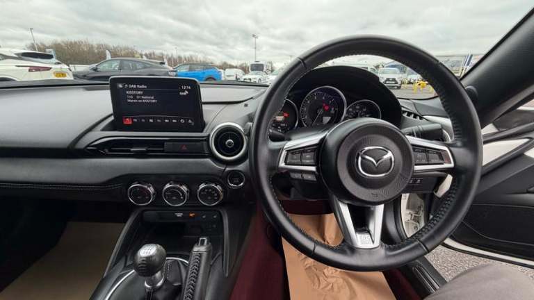 12v Electrical Power Outlet, 7in Colour Touch Screen Centre Display, AM-FM-DAB Radio - Single CD-MP3 and Premium Bose Sound System with 9 Speakers, AUX Input, Apple CarPlay and Android Auto, Integrated Bluetooth, Mazda Navigation System - European Mapping with Alternative Route Calculations - Point of Interest Search and 3-Years Free Map Updates, USB Input x2, Blind Spot Monitoring with Rear Cross Traffic Alert, Cruise Control with Manual Speed Adjustment, Driver Attention Alert - DAA, Gear Shift Indicator, Lane Departure Warning System, Multi-Dot Display Tachometer and Electric Odometer, Multimedia Commander, Rear Parking Sensors, Reversing Camera, Traffic Sign Recognition, Trip Computer, Tyre Pressure Monitoring System, 17in Alloy Wheels - Bright, Convertible Top - Premium Cherry Cloth Soft Top with Heated Rear Glass Window - Manually Operated, Door Mirrors - Electrically Adjustable - Heated - Body Coloured, Electric Windows - One Touch Auto Down, Emergency Tyre Repair Kit, Exterior Badge - 100 Years - 1920-2020, Fashion Bar Cladding - Piano Black, Scuff Plates - Black Plastic with Stainless Insert, Tailpipes - Twin, Windblocker - Black Plastic, Dusk-Sensing Lights, Headlights - Adaptive LED, Headlights - Coming-Leaving Home, LED Daytime Running Lights, LED Headlights with Automatic Headlight Levelling, Rear Combination Light, Air Conditioning - Climate Control, Air Vent Surrounds - Chrome with White Insert, Auto Dimming Rear View Mirror, Coinbox Located on Centre Console,