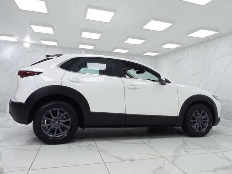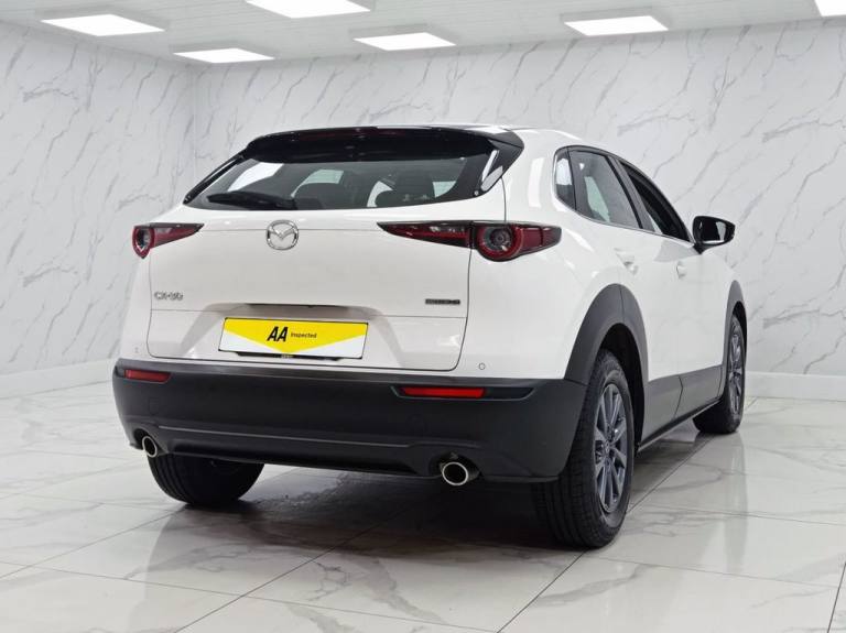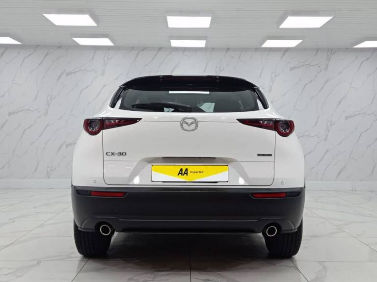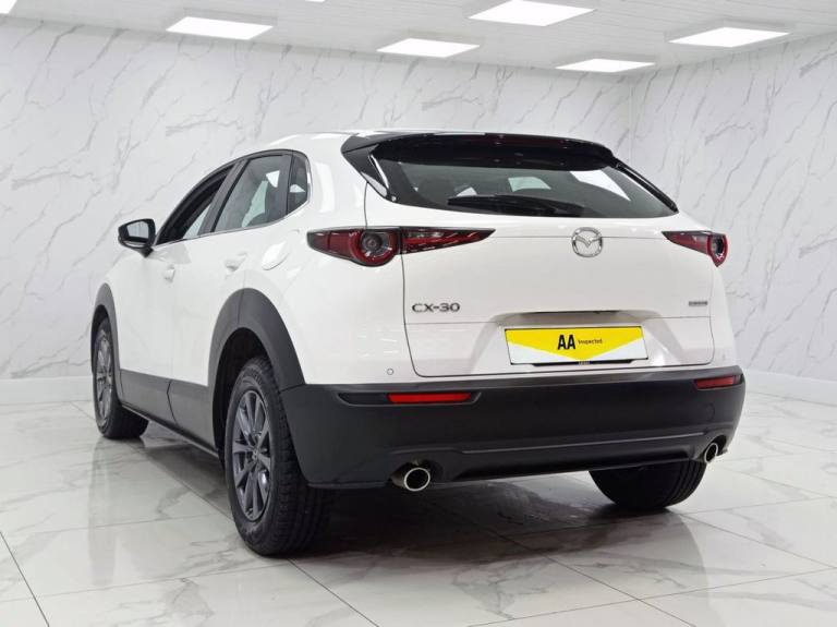 This 2022 Mazda CX-30 e-SKYACTIV G SE-L Lux presents an exceptional opportunity with its remarkably low mileage of just 11770 miles. This Euro 6 compliant vehicle boasts a clear vehicle history check, offering peace of mind. The SE-L Lux trim level is well appointed, featuring a comprehensive suite of driver aids including a reversing camera with rear parking assistance, front and rear parking sensors, and blind spot monitoring with rear cross traffic alert. For your convenience, an integrated Bluetooth system is included, and the car is equipped with LED headlights that feature auto headlight levelling. This Mazda CX-30 stands out with its impressive fuel economy of 48 mpg, a figure that indicates it is more efficient than many other vehicles in its class. Furthermore, its low CO2 emissions and low insurance group highlight its cost effectiveness for everyday driving. The 2.0L petrol engine provides a smooth and responsive driving experience, making this CX-30 a practical and appealing choice. Part Exchange Welcome. All Majors Cards Accepted. We Have Finance Available. A Wide Range of Warranties. We Also Offer Low Cost, Nationwide Delivery Available From £1.50 a Mile. **Every endeavour is made to ensure specifications and descriptions are correct. Due to model changes specification may vary. Phone for details. MPG figures shown are government official figures.**.Premium Cloth - Dark Grey, Arctic White, 12V Electrical Power Outlet, 16in Alloy Wheels - Grey, 2 USB Charging Ports, 8.8in TFT Colour Centre Display, ABS - Anti Lock Braking System, AM-FM-DAB Radio with 8 Speakers, Airbags - Curtain Front and Rear, Airbags - Front Passenger Deactivation System, Apple CarPlay and Android Auto, Auto Dimming Drivers Door Mirror, Auto Dimming Rear View Mirror, B-Pillar and C-Pillar Garnish - Satin Black, Blind Spot Monitoring with Rear Cross Traffic Alert, Body Coloured Electrically-Adjustable - Heated - Auto Power Folding Door Mirrors, Connected Services, DSC - Dynamic Stability Control, Door Panel Trim - Dark Cloth Insert, Door Pockets - Driver - Front Passenger and Rear, Driver Attention Alert - DAA, Driver and Front Passenger Airbags, Drivers Knee Airbags, Dual Zone Climate-Controlled Air-Conditioning with Rear Air Vents, Electric Power Assisted Steering - EPAS, Electric Windows - Front and Rear with One-Touch Auto Down - Up, Electronic Parking Brake with Auto-Disengage Function - Auto-Hold Function, Emergency Stop Signalling System - ESS, Emergency Tyre Repair Kit, Front Grille - Satin Black Finish, Front Side Airbags, Front and Rear Parking Sensors, G-Vectoring Control Plus - GVC Plus, Gear Shift - Leather-Wrapped, Glovebox Illumination, Grab Handles - Driver - Front Passenger and Two Rear with Coat Hooks, Grille - Chrome Finish Signature Wing, Headlights - Coming-Leaving Home, Headlights - Dusk-Sensing Lights, Headlights - LED with Auto Headlight Levelling, Heated Front Seats with 3-Stage Settings, High Beam Control, Hill Launch Assist - HLA, ISOFIX Child Seat Anchorage for Outer Rear Seats, Instrument Panel 7in TFT Colour Driver Display, Integrated Bluetooth System, Integrated Mazda Navigation System with 5-Years Free European Map Updates, Intelligent Speed Assist, Interior Colouration - Black, Kodo Turn Signal, LED Interior Lighting - Front and Rear, LED Rear Combination Lights, Lane Keep Assist with Lane Departure Warning System, Leather-Wrapped Steering Wheel with Telescopic and Tilt Adjustment, Luggage Compartment - Light, Mazda Radar Cruise Control, Multimedia Commander, Rain-Sensing Front Wipers with Adjustable Sensitivity and Speed, Rear Roof Spoiler - Gloss Black, Rear Seats - Folding Centre Armrest Equipped with Two Cup Holders, Rear Wiper, Remote Central Locking with Deadlocking, Reversing Camera, Roof Headlining - Light - Ceiling and Pillars, Roof Mounted Sunglasses Holder, Seat Map Pocket Located on Front
